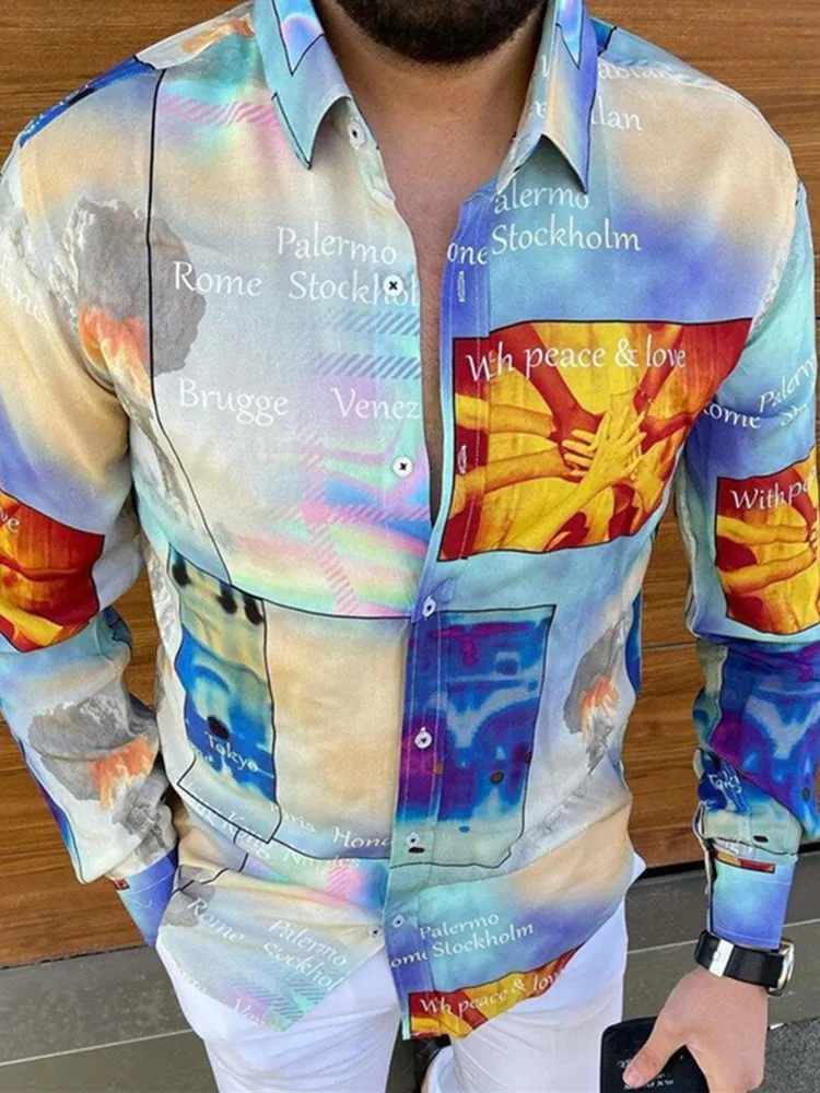 Мужская рубашка с длинным рукавом, приталенная Готическая однобортная рубашка с цветочным 3D принтом и отложным воротником, новинка 2021