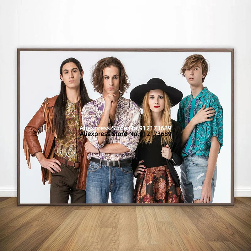 Постер манескин, китайские листья, Дамиано Давид, Виктория де анжелис, Томас Рагги, Итан торкио, изображения персонажей на холсте