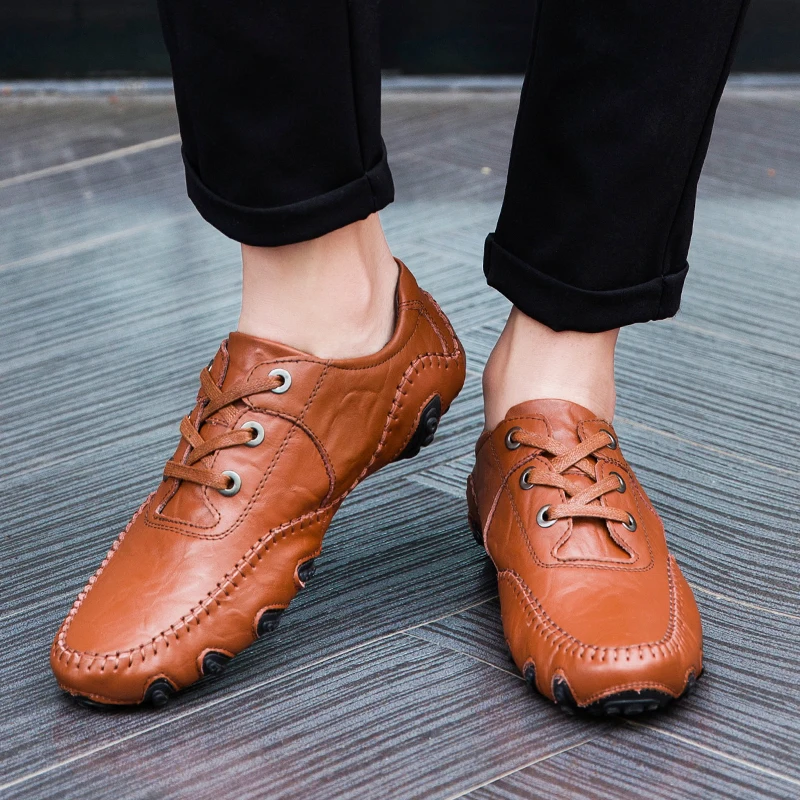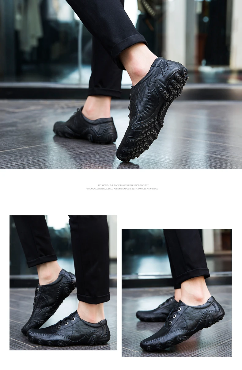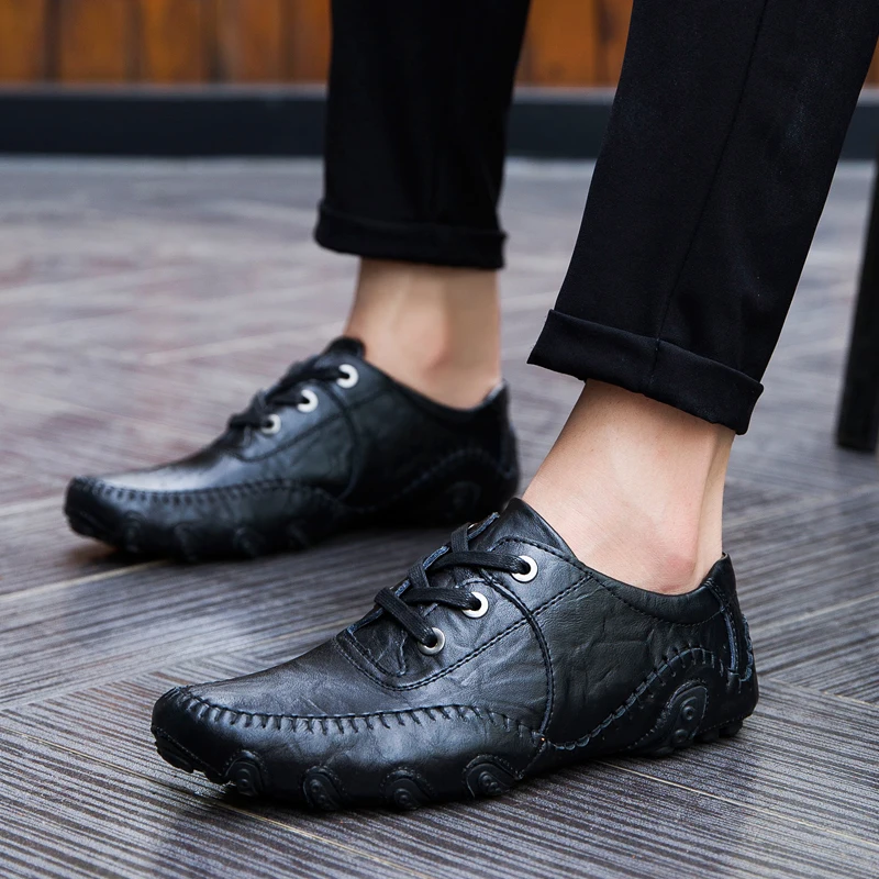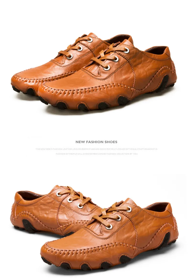 Лоферы мужские из натуральной кожи, мягкие удобные, на шнуровке, плоская подошва, модная дизайнерская повседневная обувь для вождения