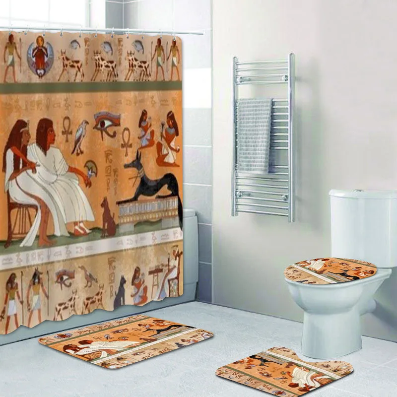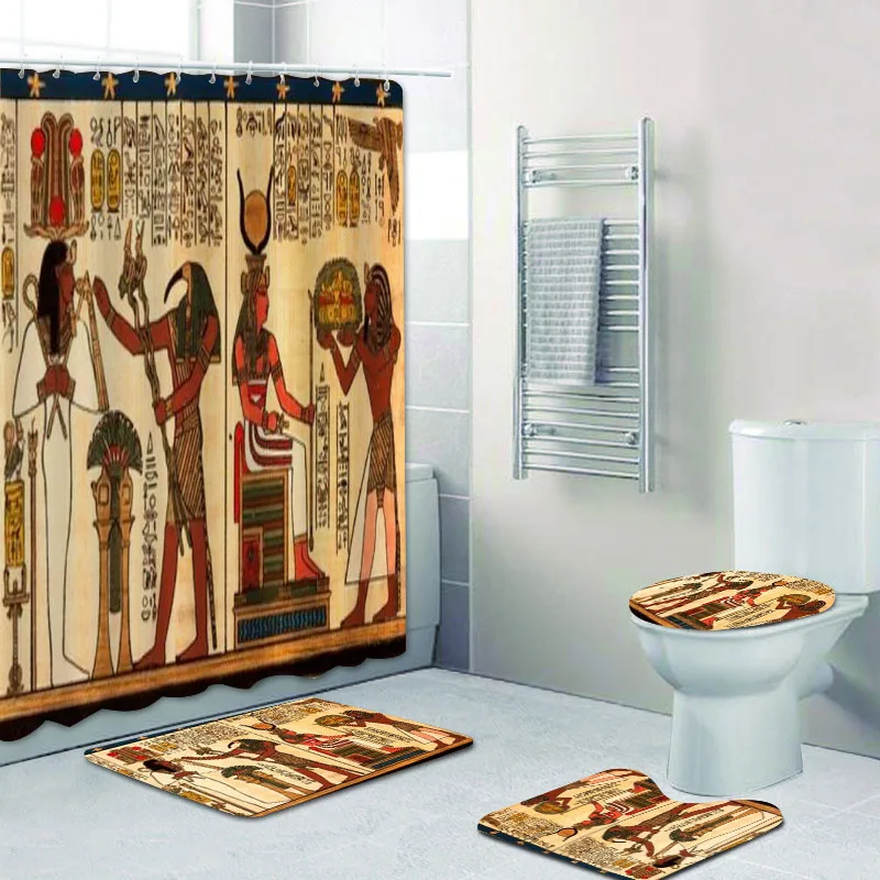 Старый Египетский папирус с античными иероглифами, занавеска для душа для ванной комнаты, набор s, Египет, занавеска для ванны, коврики для туалета