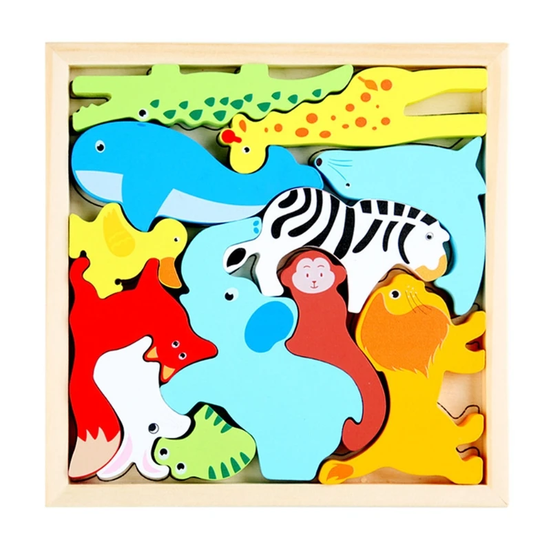 Красочный 3D Деревянный пазл детские животные Пазлы детские развива...