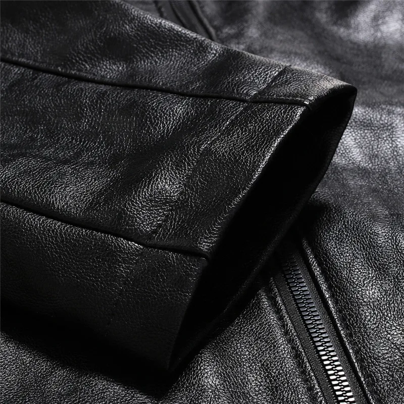 Мужская куртка из искусственной кожи, с воротником-стойкой, демисезонная, тонкая, черная верхняя одежда