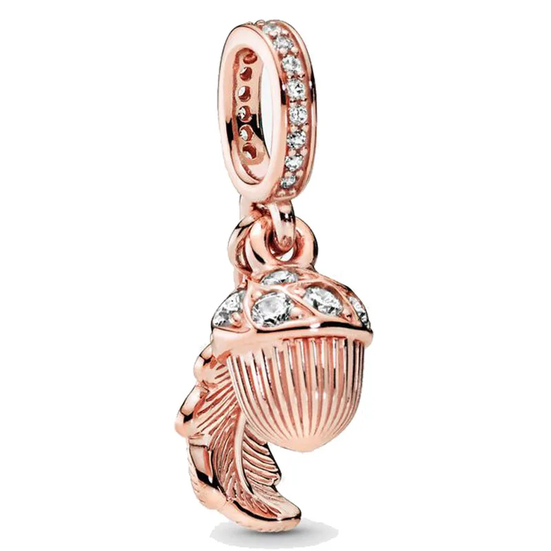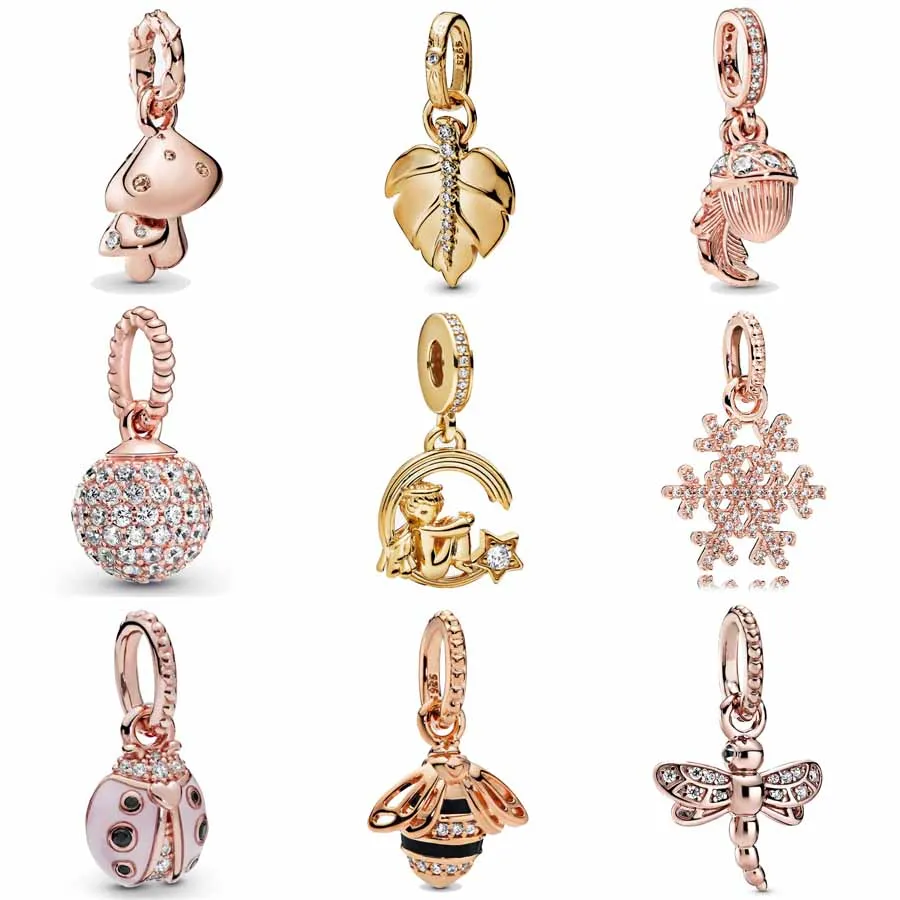 Розовое золото, блестящие грибы, полосы, королева, пчела, желудь и лист, божья коровка, товар, браслет Pandora, DIY ювелирные изделия