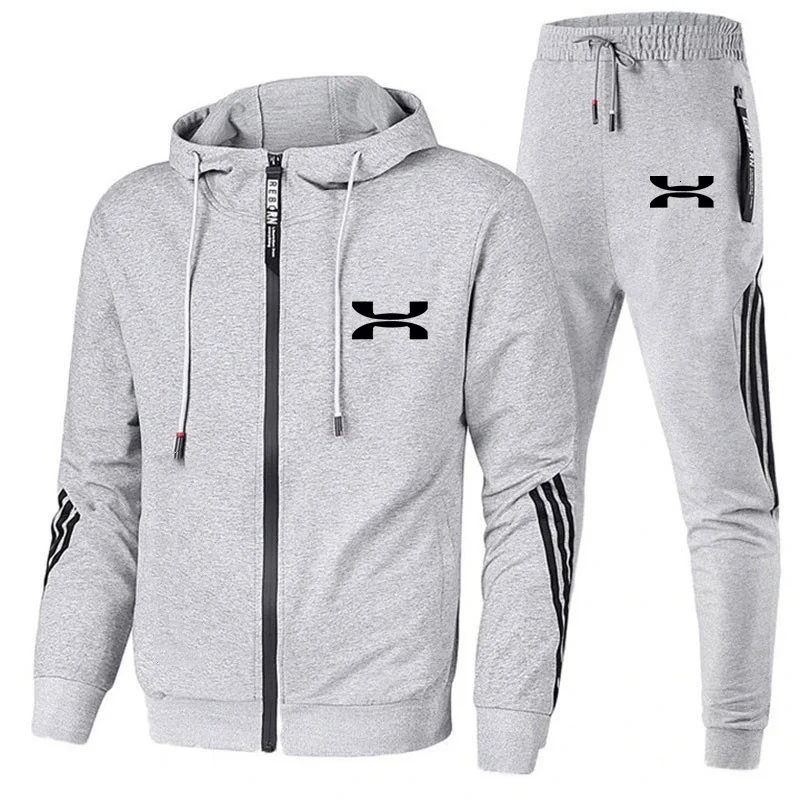 Спортивный костюм мужской из двух предметов, брендовая толстовка с капюшоном и штаны, на молнии, повседневный комплект одежды, весна-осень