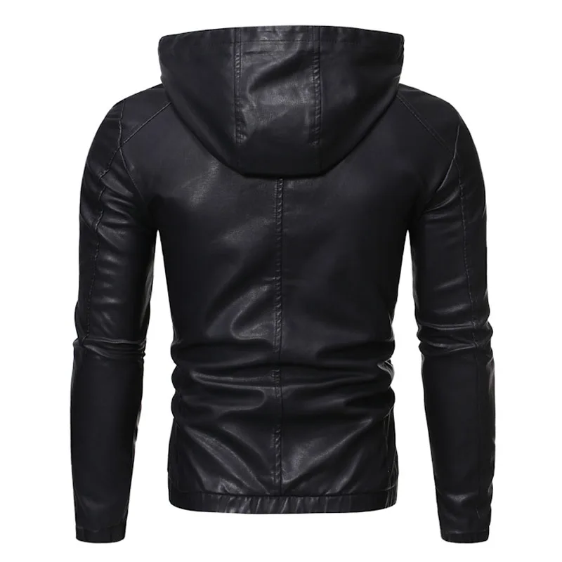 Мужская осенняя куртка из искусственной кожи, с капюшоном