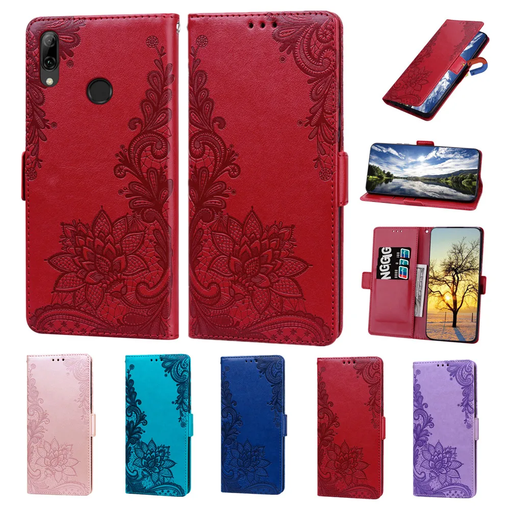 Кожаный чехол-книжка с кружевом и цветами для Huawei Honor 8A Prime...