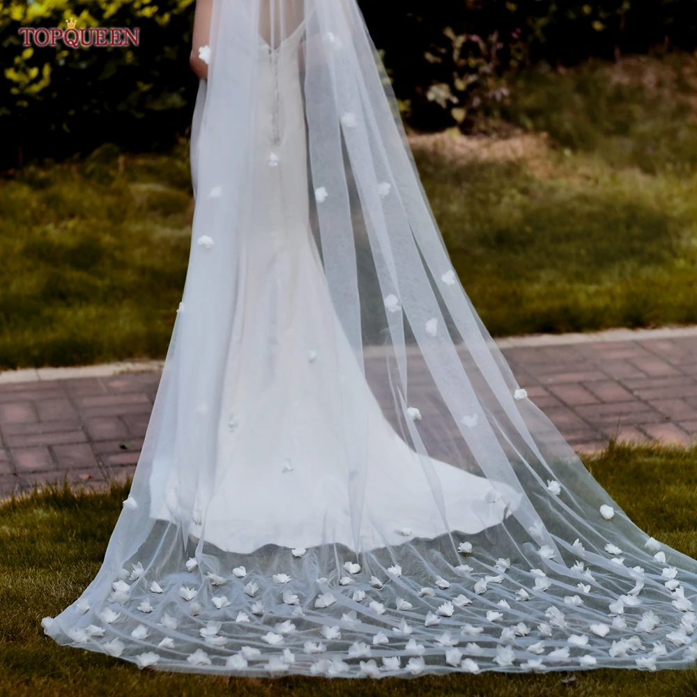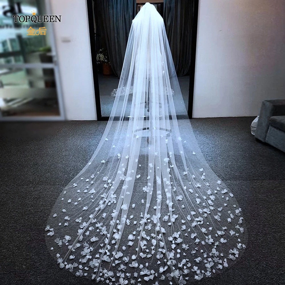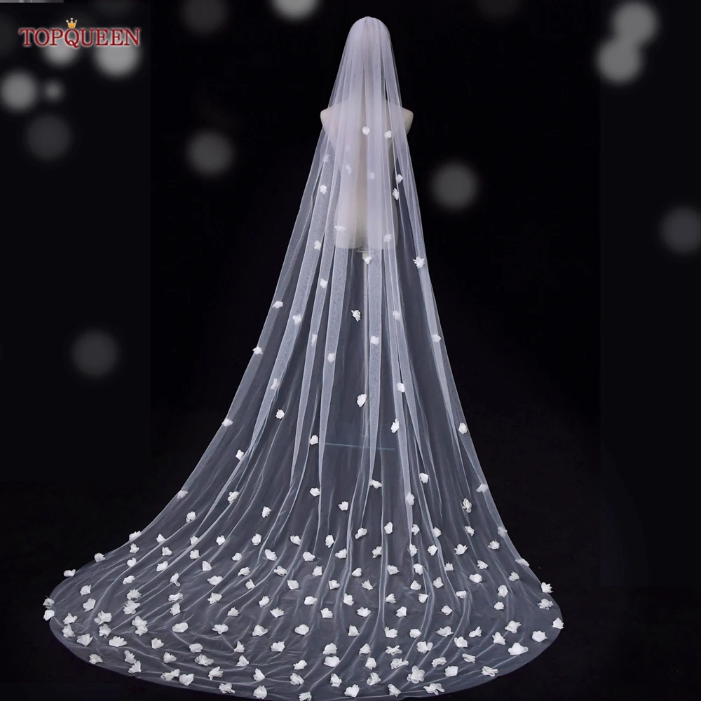 TOPQUEEN V20 100% ручная работа высокого класса по индивидуальному заказу 3D Цветы 3 м Соборная вуаль невесты лепестки роз свадебная фата невесты с цветами волос
