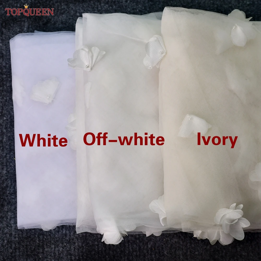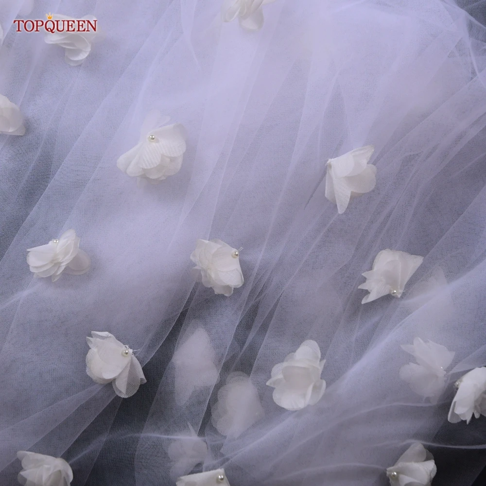Фата свадебная TOPQUEEN V20s с объемными цветами, роскошная Длинная фата для невесты, Фата для невесты, длиной 5 метров, фата белого цвета