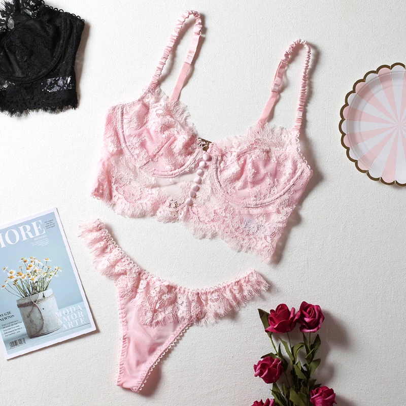 Сексуальное женское белье, женское нижнее белье, кружевной бюстгальтер с эффектом пуш-ап, розовый секретный бюстгальтер, чувственное эротическое белье, бюстгальтер и трусики, комплект