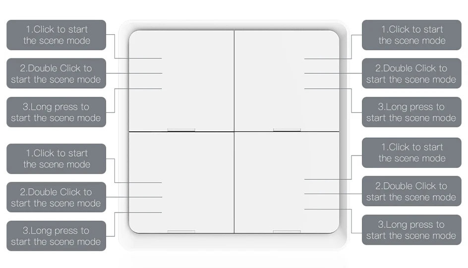 Дважды нажмите переключатель сцены, чтобы выключить весь светильник, кондиционеры, вентиляторы и другие устройства tuya перед отправкой.