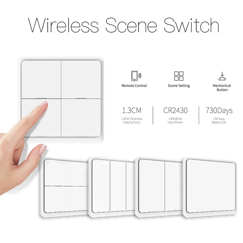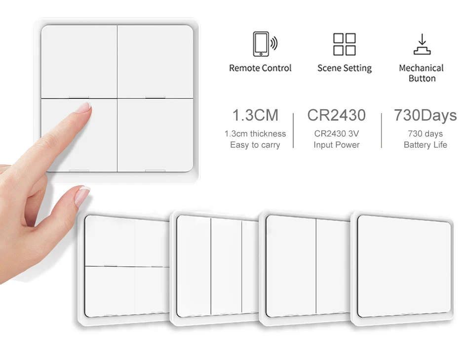 Кнопочный переключатель ZigBee 3,0 Tuya Smart Scene, 1234 клавиши, 36912 сцен автоматизации, беспроводной переключатель для устройств Tuya