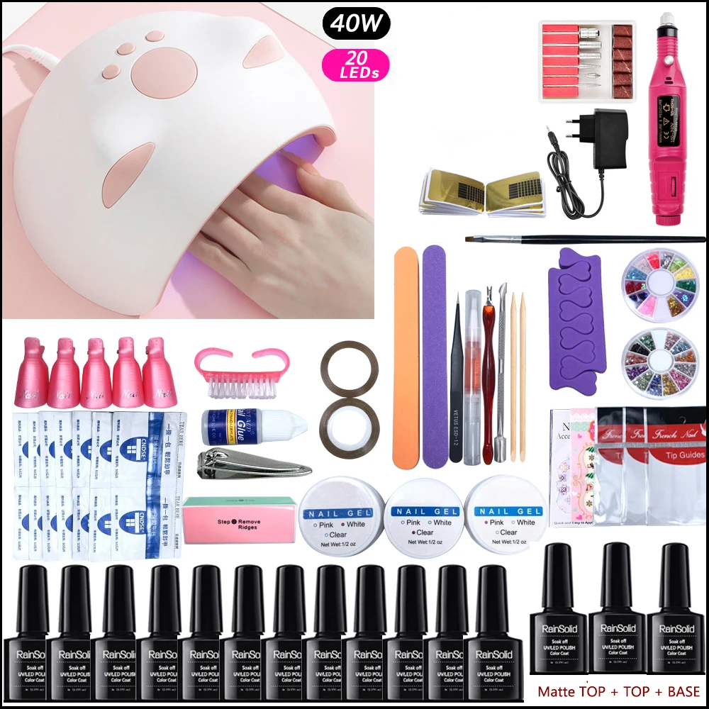 Маникюрный набор для высыхания ногтей 12 видов лак для ногтей набор с 40 Вт УФ светодиодный набор для маникюра акриловый набор для наращивания гель набор