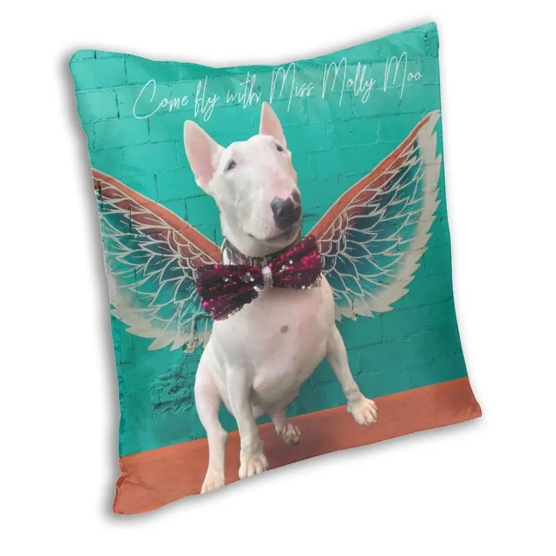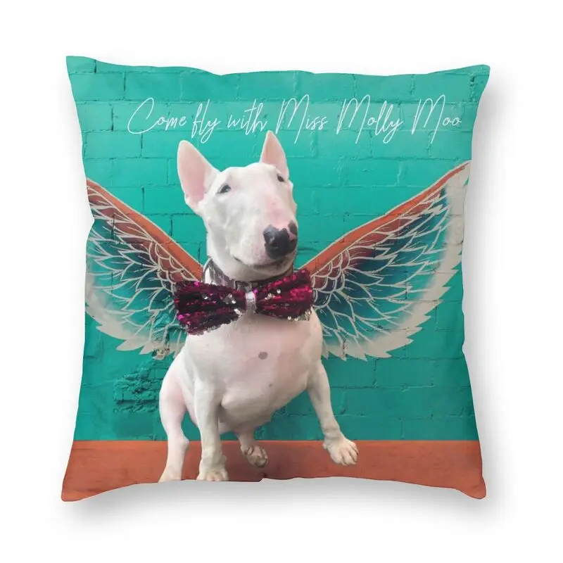 Двусторонний чехол для гостиной подушка в виде ангела с изображением собаки подушка для влюбленных, яркий Английский бультерьер