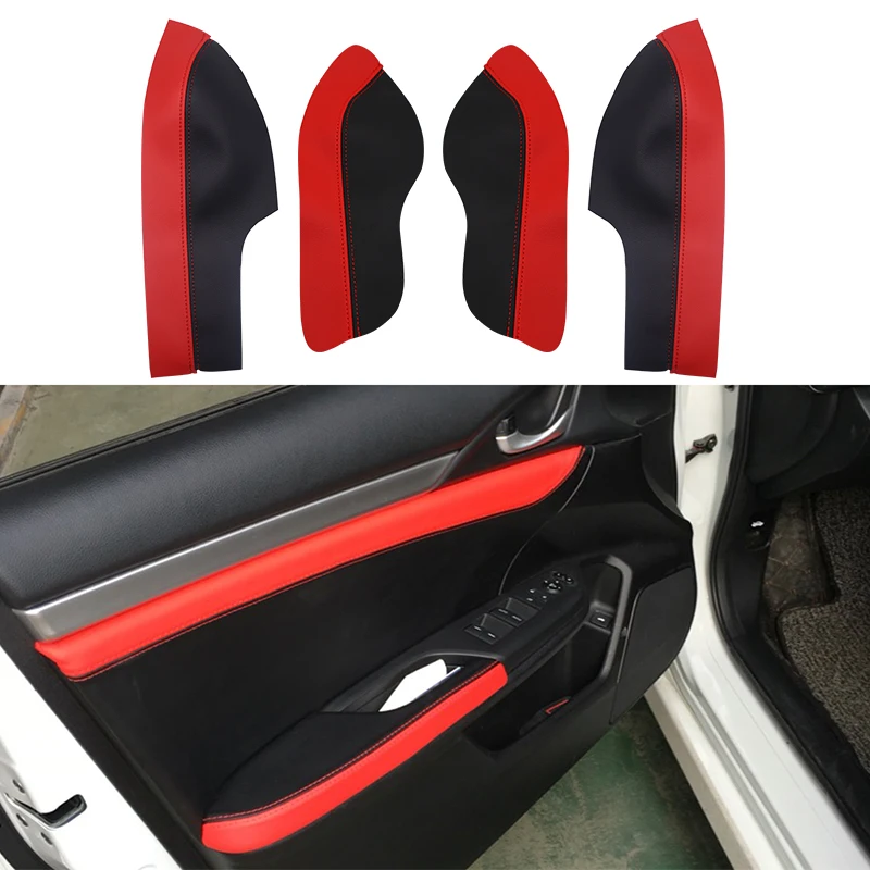 4 шт., Кожаные чехлы на дверные ручки и подлокотники для Honda Civic 10 поколения 2016 2017