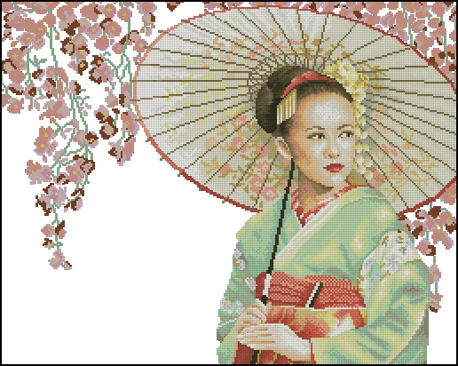 Женский зонт Geisha, Высококачественная вышивка, Набор для вышивки крестиком 14 карат, без принта, сделай сам, искусство, ручная работа, домашний декор
