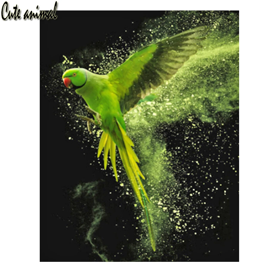 Картина из квадратных страз 5D с полным заполнением, вышивка крестиком зеленым летающим попугаем, мозаика из страз, наклейки на стену с птицами, домашний декор