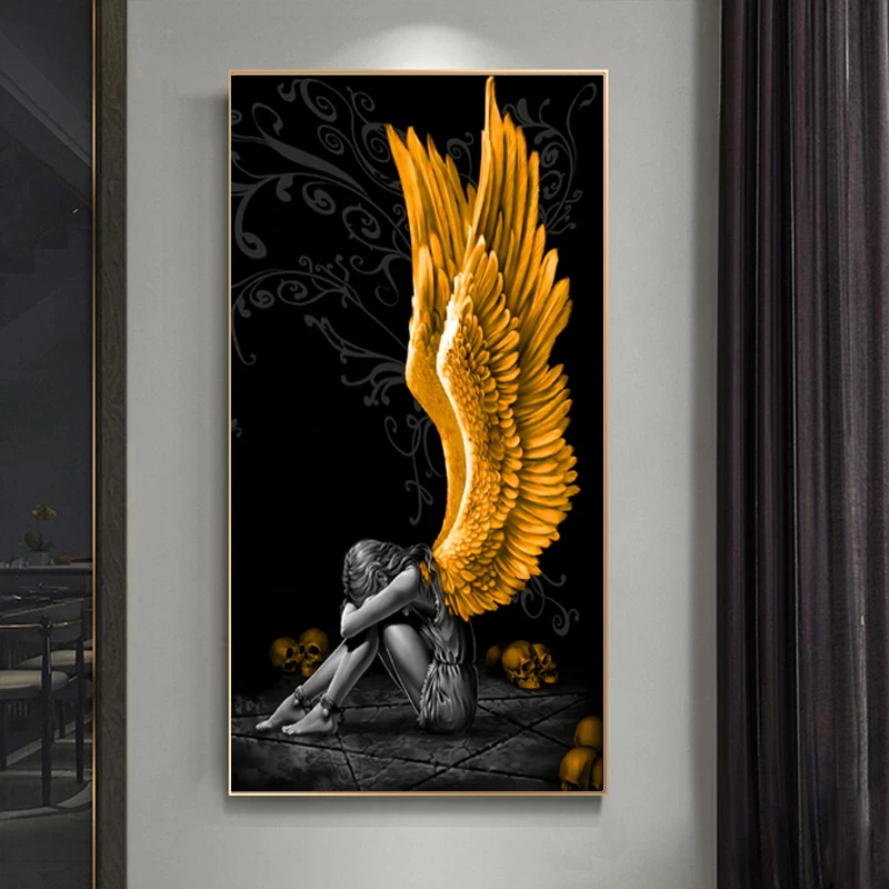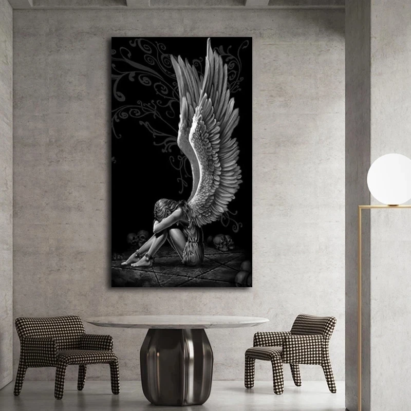 Картина с дьяволом и ангелом, серая фигурка, крылья, скелет постер с ангелом, украшение для дома, Картина на холсте, Постер для гостиной, картина icon star icon star icon star icon star icon star
