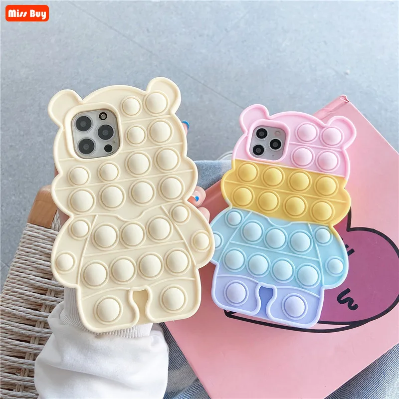 2. Силиконовый чехол Cartoom 3D с милым маленьким медведем радуги, чехол с пузырьками для снятия стресса