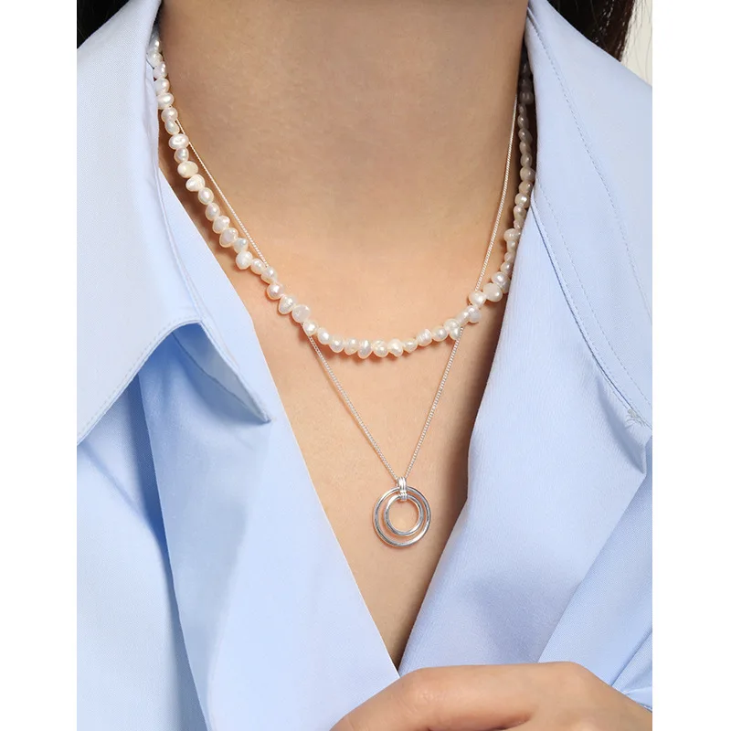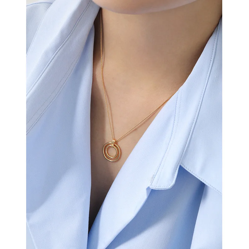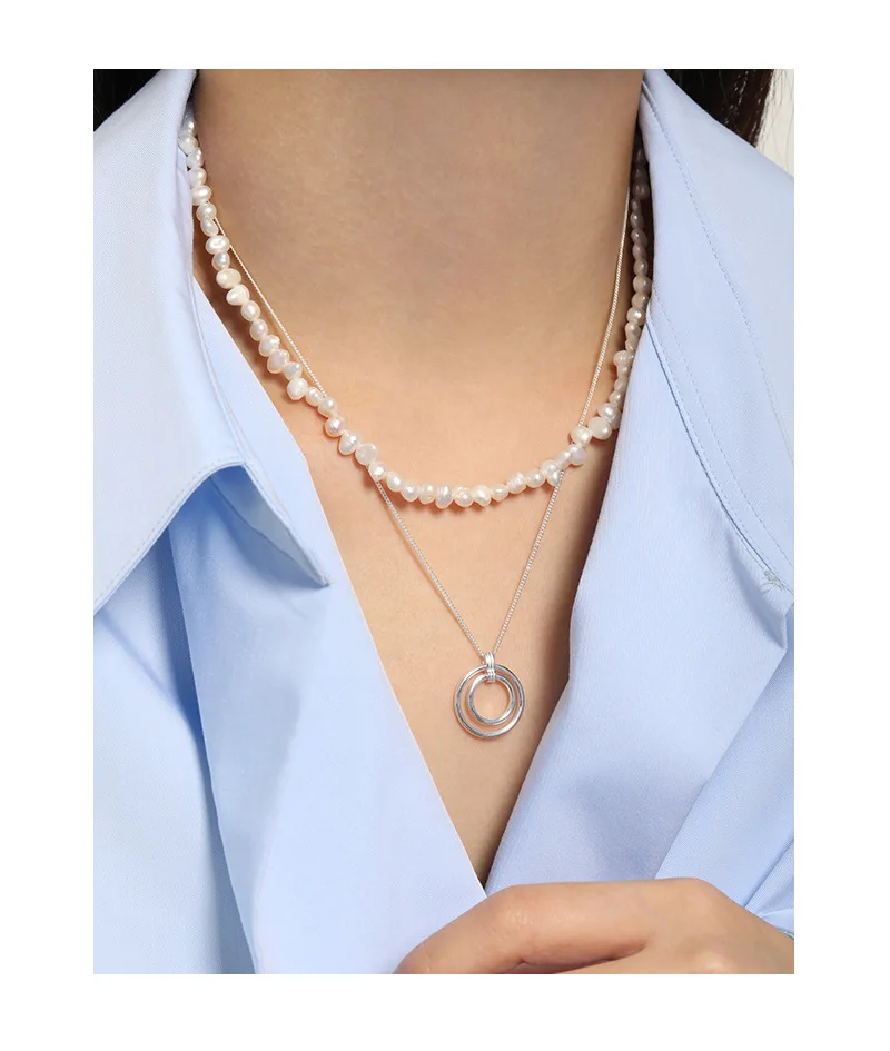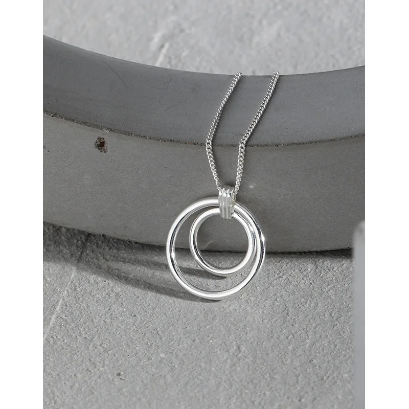 Женское колье-чокер из серебра 925 пробы с подвеской в виде кругов