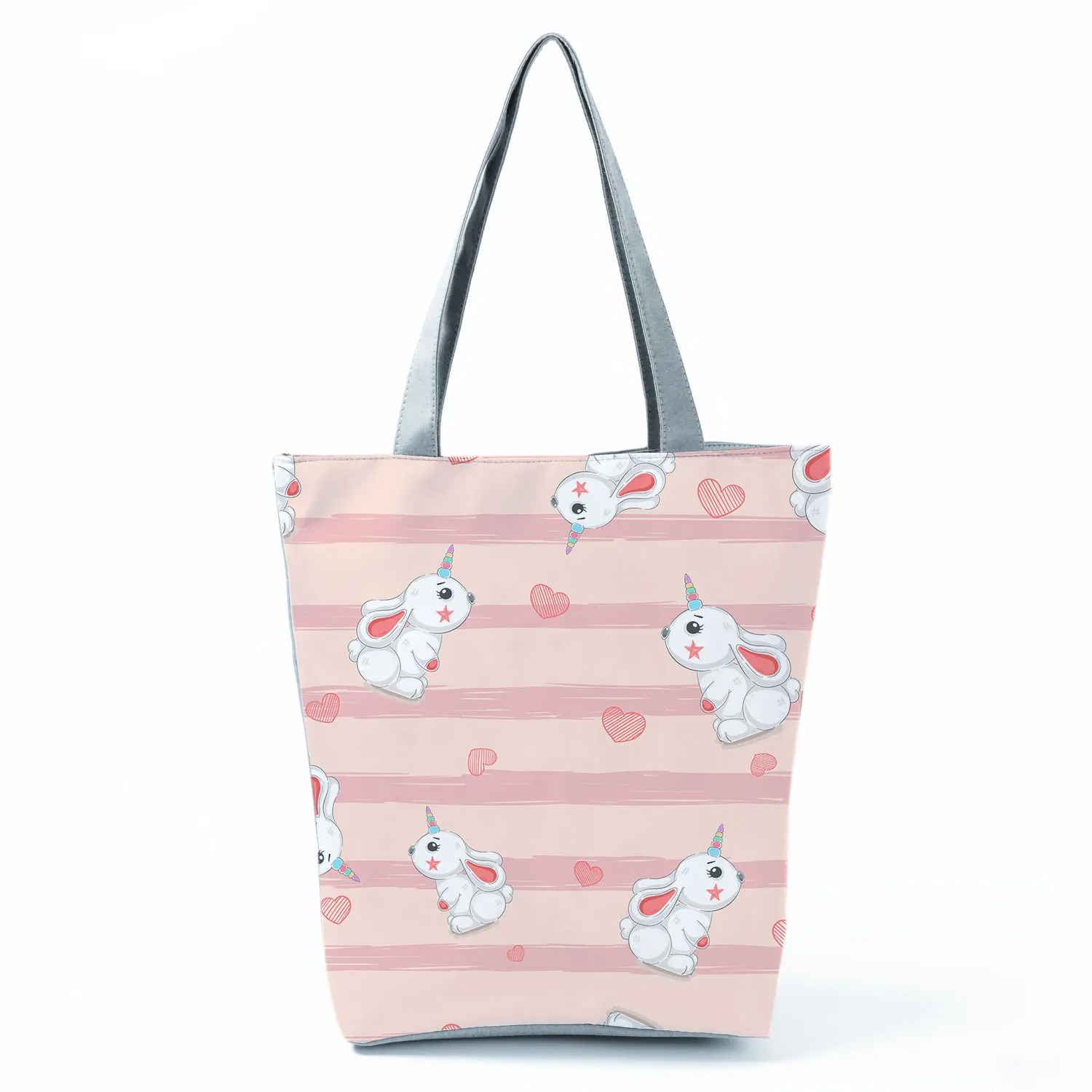 Сумка на плечо с принтом единорога кролика, Милая женская сумка в полоску с принтом животных, модные сумки для путешествий, вместительная сумка для покупок