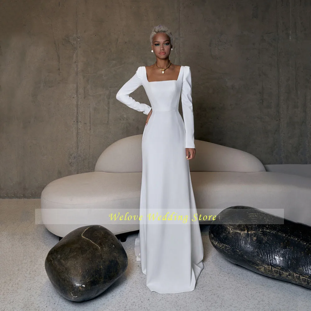 Женское свадебное платье со шлейфом, белое простое официальное платье невесты с длинным рукавом, лето 2022