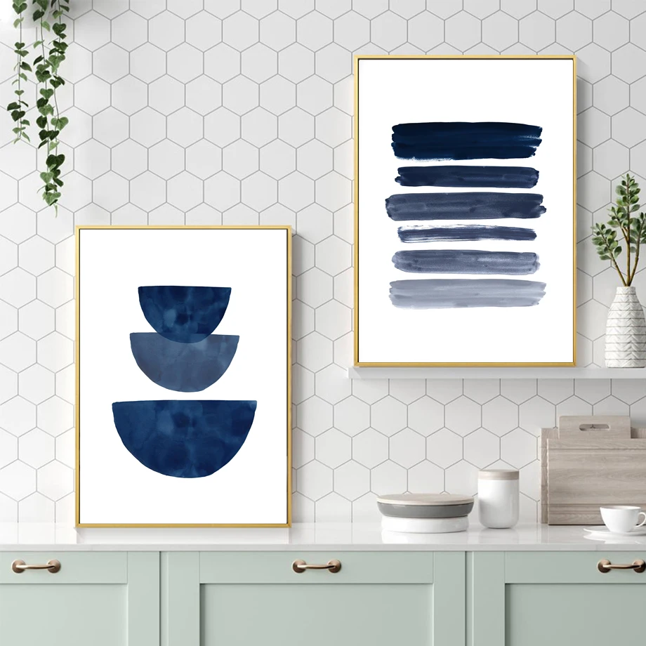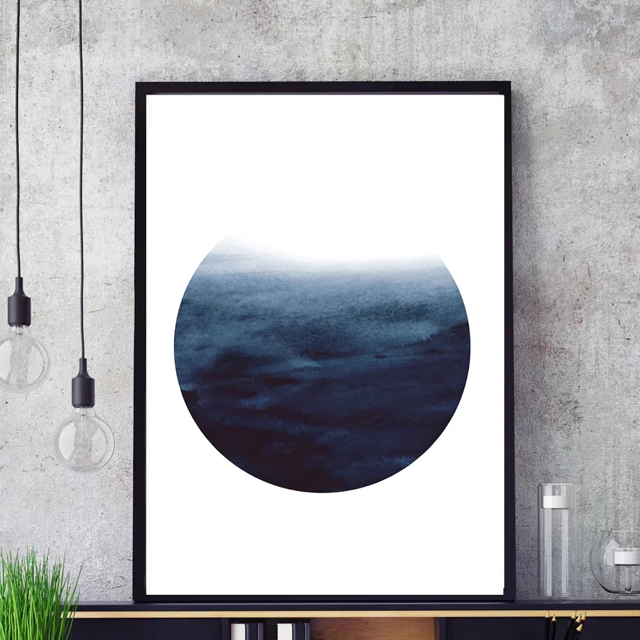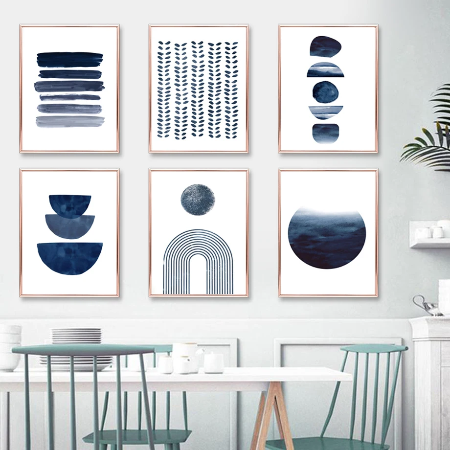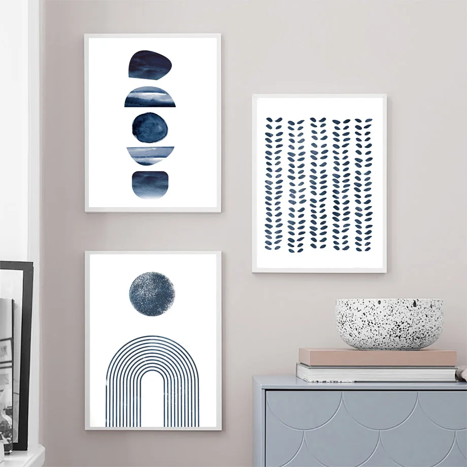 Темно-синий абстрактный Sun Moon Line Dots геометрический художественный холст картина скандинавские постеры и печать, Картина Настенная для декора гостиной