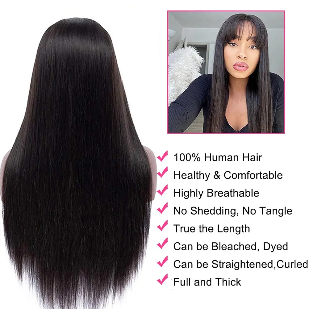 Накладной длинный прямой парик с челкой 10 12 14 16 18 20 22 дюйма натуральные бразильские человеческие волосы парик для черных женщин парики