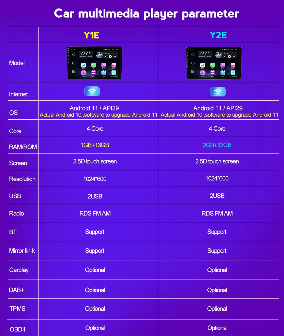 Поддержка задней камеры, DVR, OBD, давления в шинах, Carplay, DAB + (опционально)