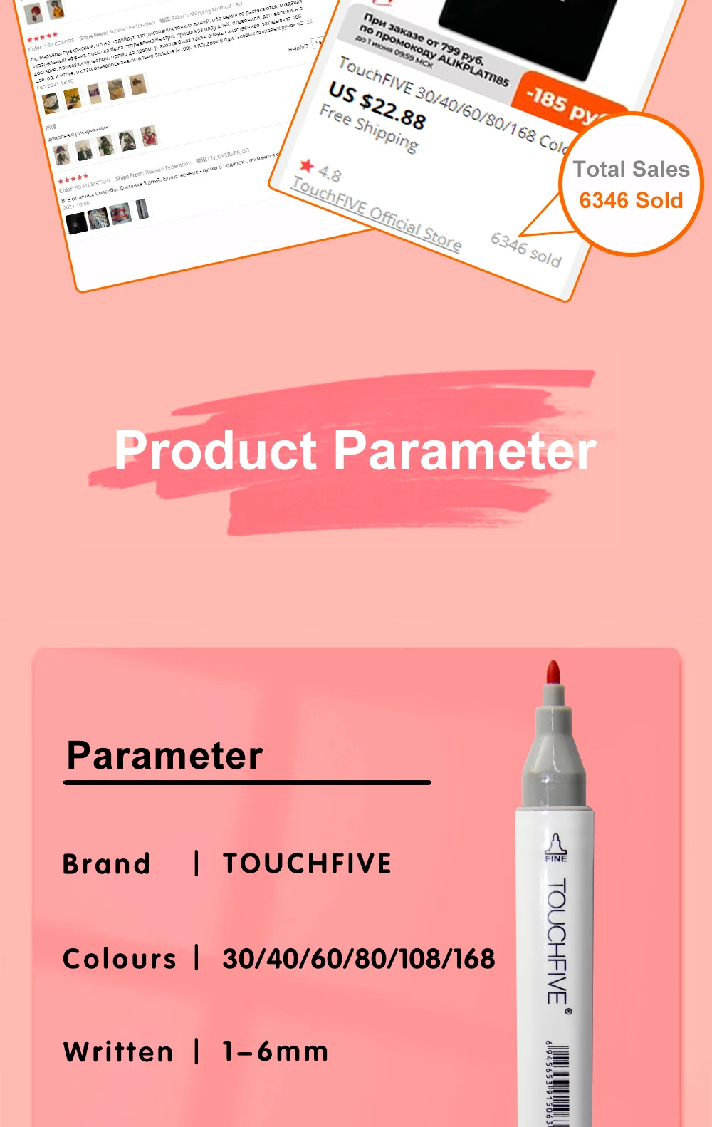 Маркеры TOUCHFIVE на спиртовой основе, двусторонние, 168 цветов, то...