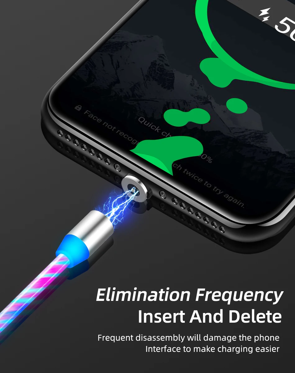 Магнитный зарядный мобильный телефон-кабель 2 м, USB Type-C, светящ...