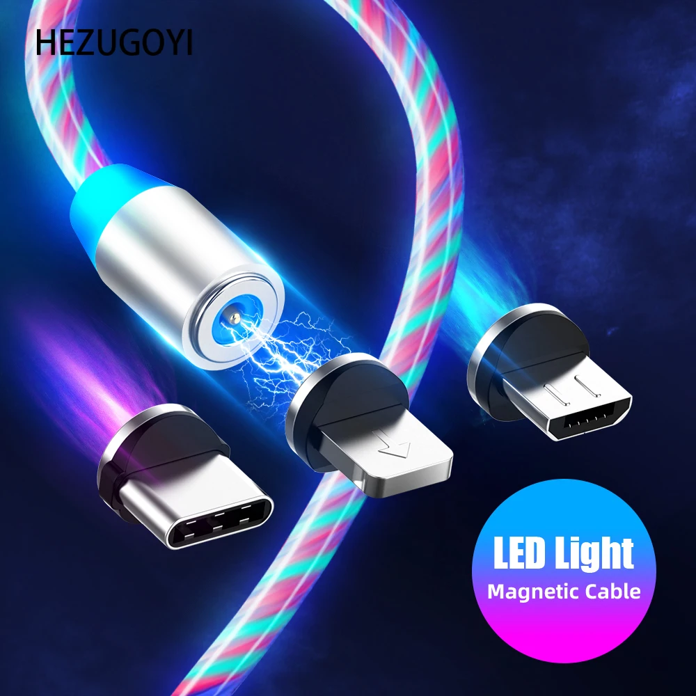 Светящийся светодиодный магнитный кабель USB Type-C кабель микро зарядное устройство кабели светящийся шнур зарядный шнур для iPhone Huawei Samsung LG