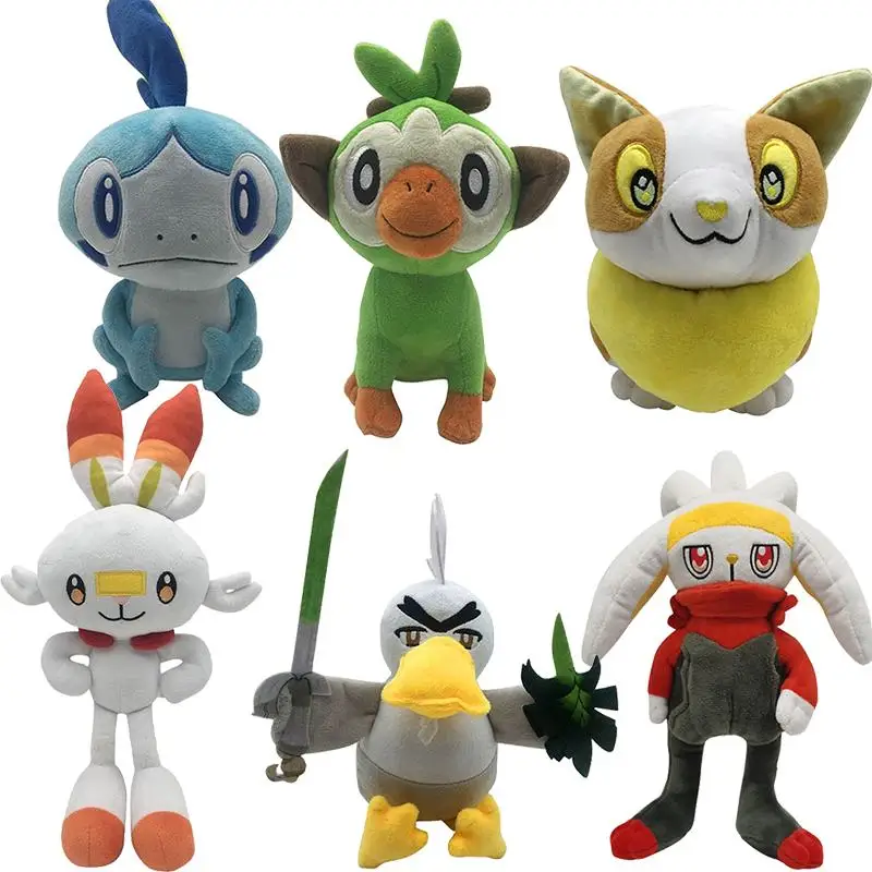 Категория: плюшевая куклаКатегория моделирования: персонажЯвляется ли моделирование мультяшным или анимационным: ДаУпаковка: Opp мешокМатериал наполнения: полипропиленовый хлопокПлюшевая классификация: кристально мягкаяЦвет: Sirfetch 'd 26 смЦвет: Scorbunny 36 смЦвет: Sobble 26 смЦвет: Grookey 23 смЦвет: Yamper 20 смЦвет: Cinderace 28 см