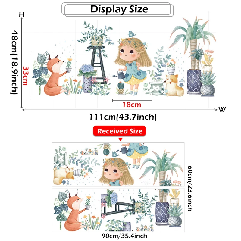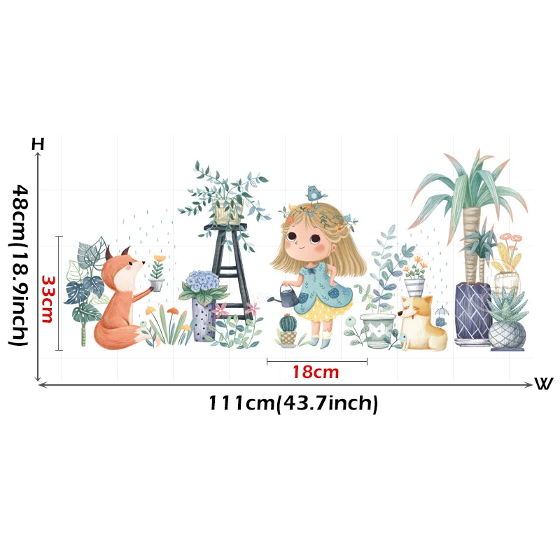 themeCartoon Girl Fox Bonsai Plants Garden Wall Stickers Removable Wall Dec