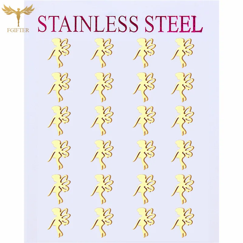 Серьги-гвоздики женские, из нержавеющей стали, золотистые, 12 пар