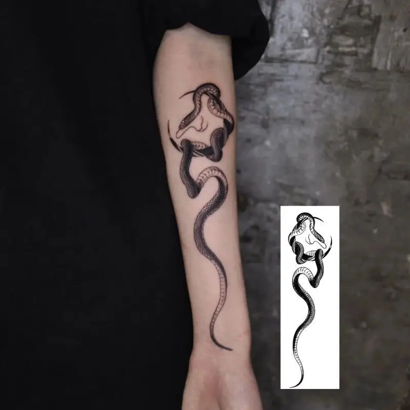 Временные тату-наклейки в виде змеи красного и черного цвета для женщин и мужчин, водонепроницаемая Имитация Талии на тело, тату в виде темной змеи, большой размер