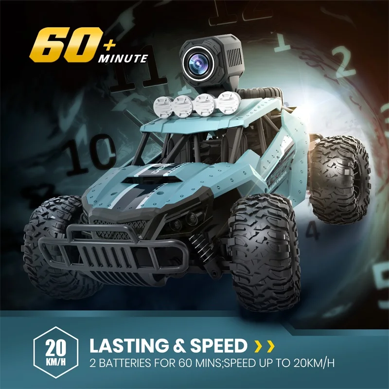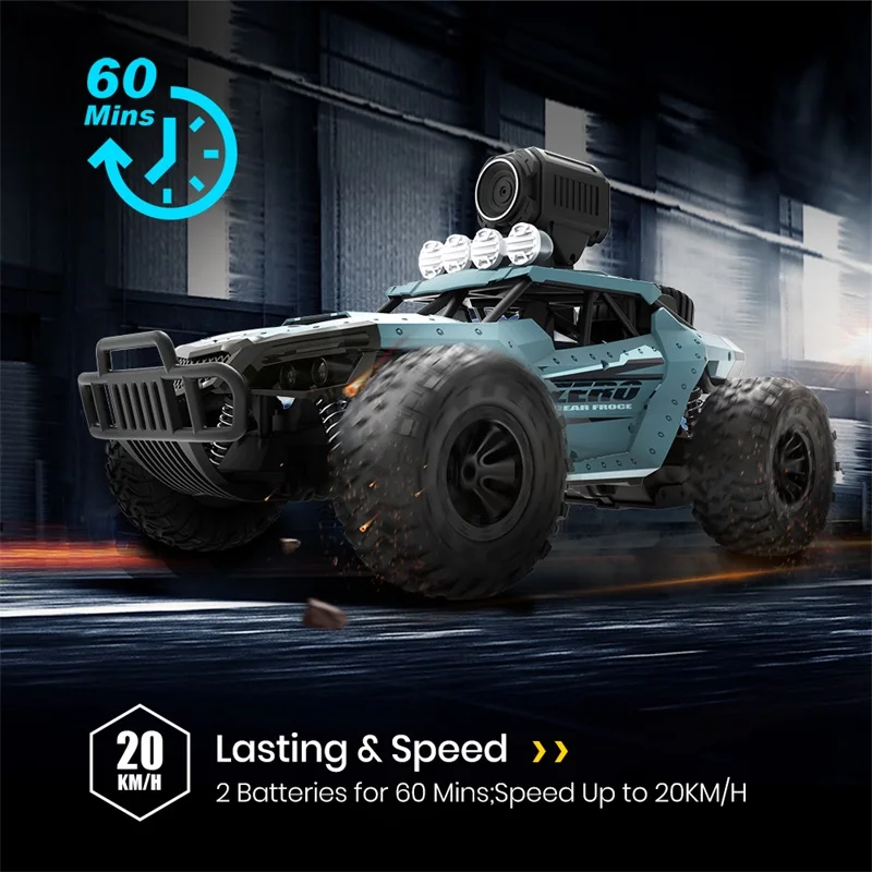 【 60 минут работает в общей сложности 】с мая 2020 года, мы обновили автомобиль с двумя литий-ионными batteries. Время работы каждого аккумулятора достигает до 25-30 минут при полной зарядке с аккумулятором 7,4 В 1000 мАч Ni-MH. Скорость до 15-20 км/ч с двумя мощными двигателями.