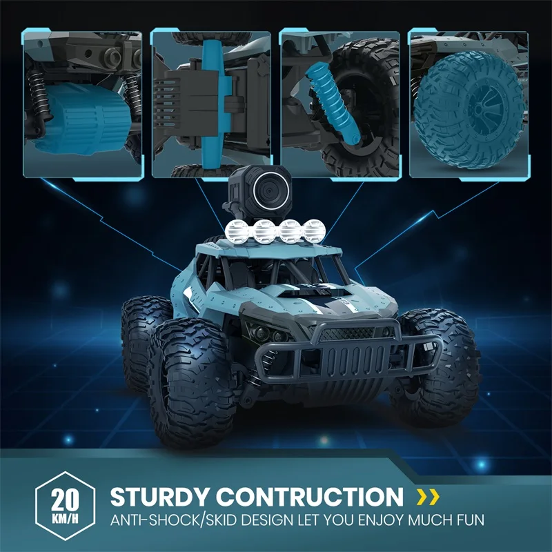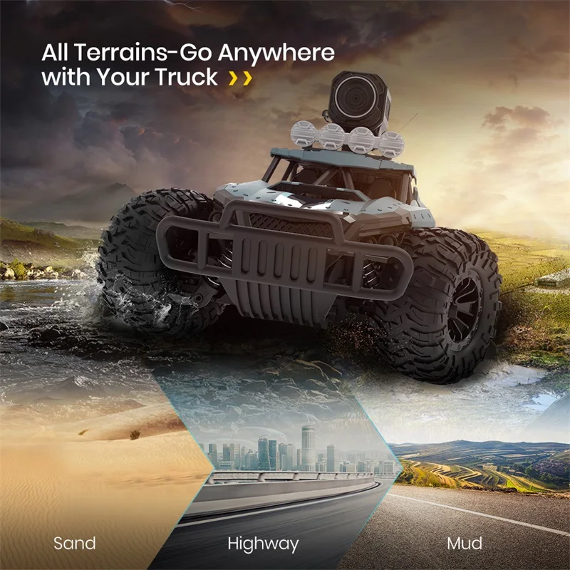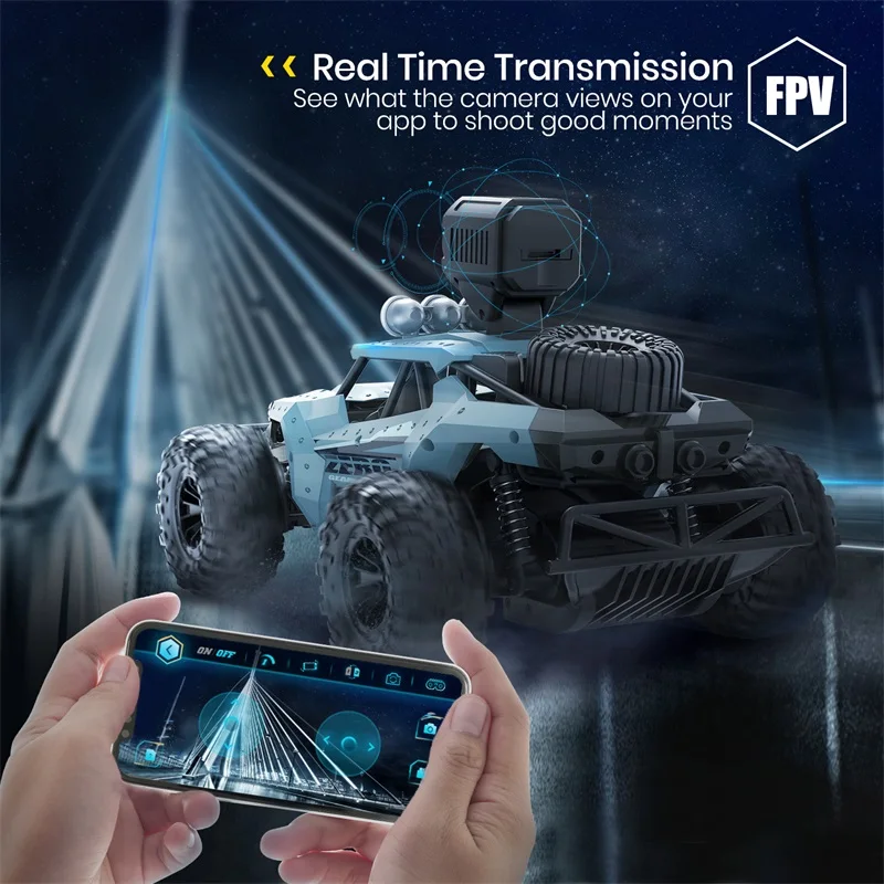 【Dual Управление Mode】You может управлять этим грузовик с двумя режимами Подходит для: ① 2,4 ГГц Радио Дистанционный пульт Управление (радио Управление Радиус действия до 165ft), это позволяет гоночный ими со своими друзьями в одно и то же время. ② мобильный телефон с приложением для вождения (расстояние управления Wi-Fi до 100 футов), Вам не нужно следить за автомобилем и делиться тем, что вы захватываете с друзьями или по всему миру через социальные сети.