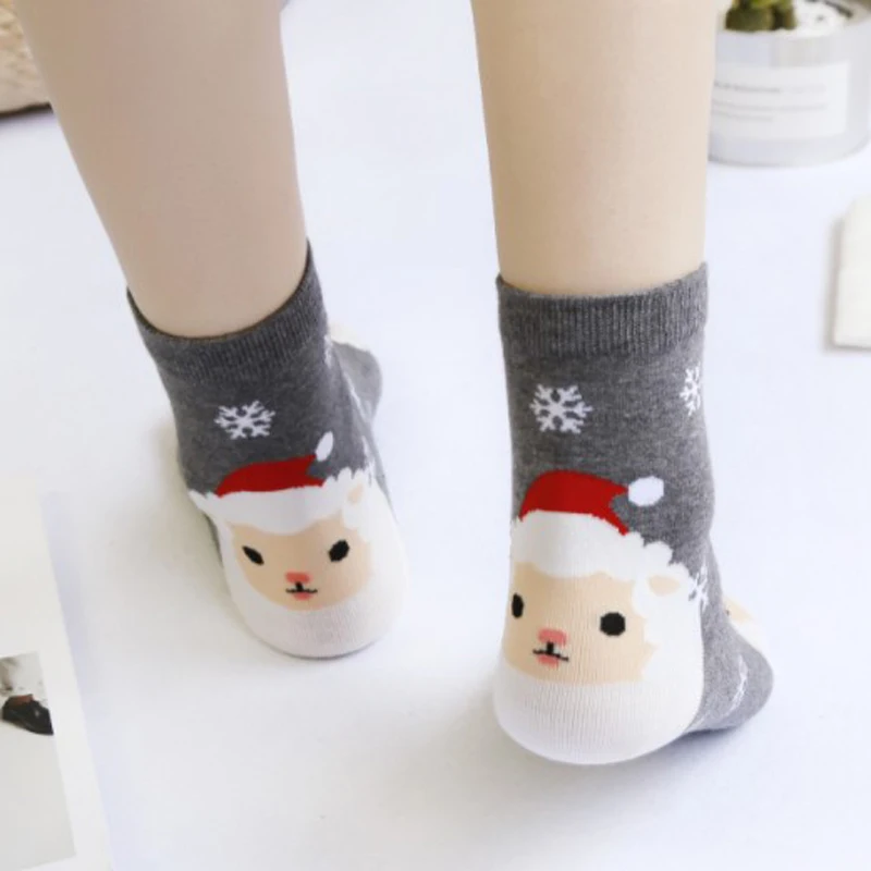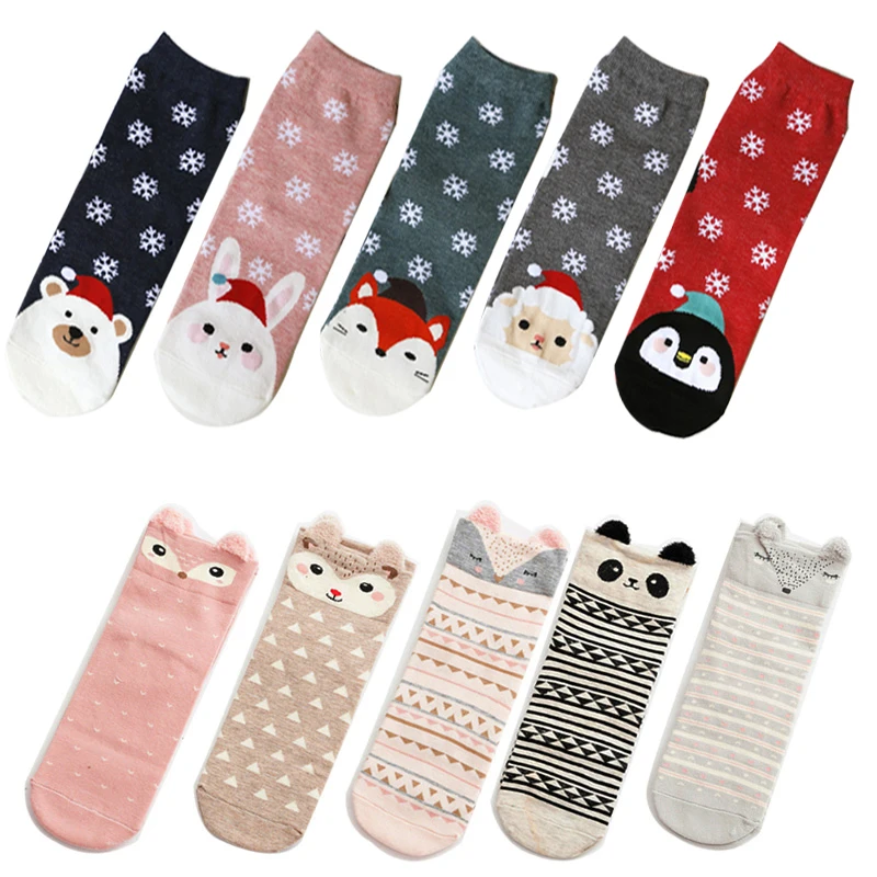 Милые Мультяшные женские носки, хлопковые носки с животными, осенне-зимние теплые носки для девушек, носки с рождественским рисунком, женские носки