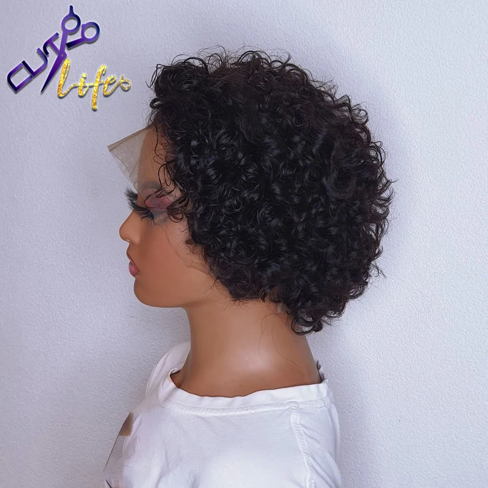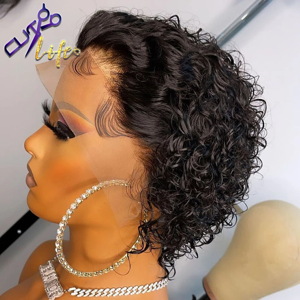 Натуральные Короткие вьющиеся парики, парики из человеческих волос, парики из Боба на сетке спереди, предварительно выщипанные парики для черных женщин, бразильский парик с глубокой кудрявой волной без повреждений