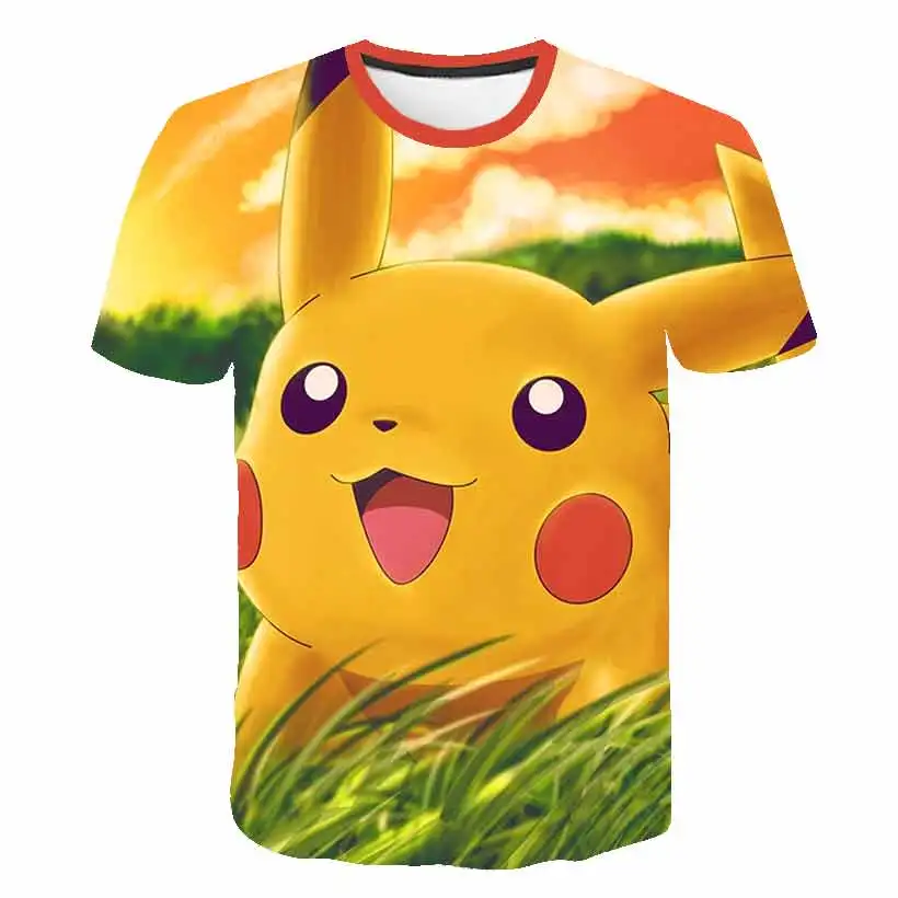 Футболка Pokmon, летняя футболка, мультяшная 3D печать, одежда для ...