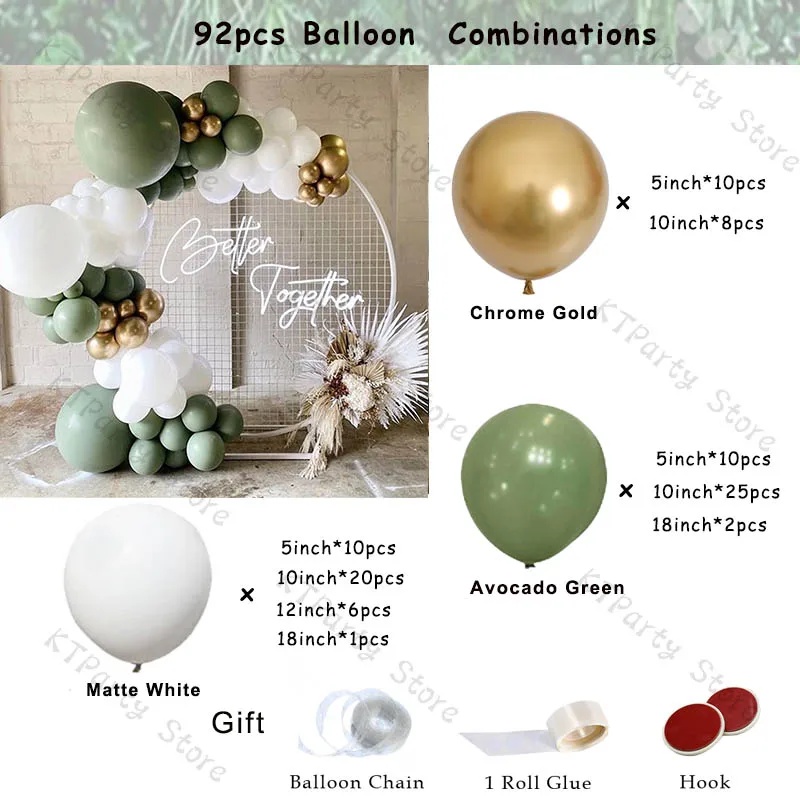 92 шт. авокадо зеленый цвет микс хром золото латексные воздушные шары-гирлянды набор Арка цепь Джунгли Тема Свадьба вечеринка украшения дома