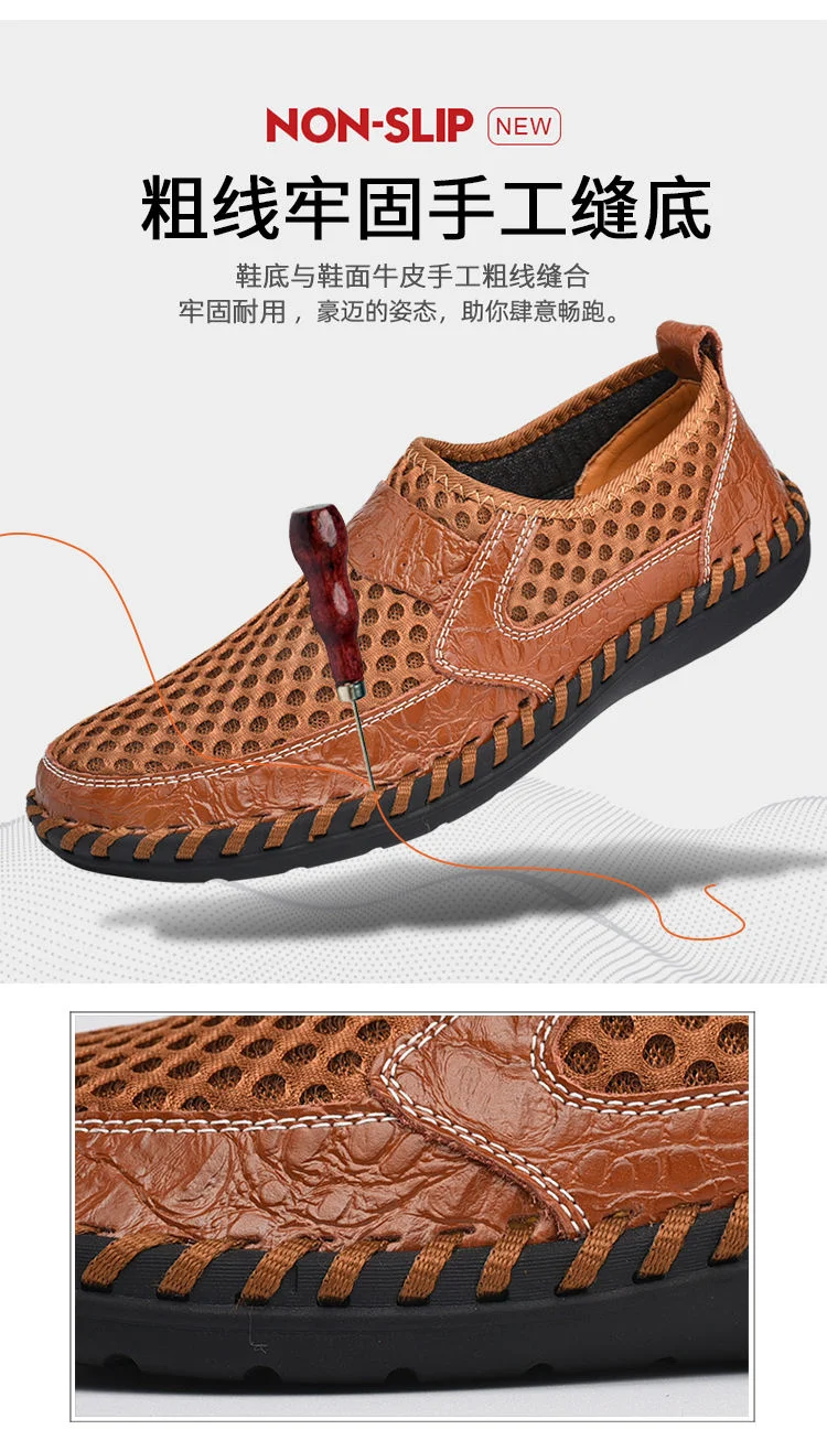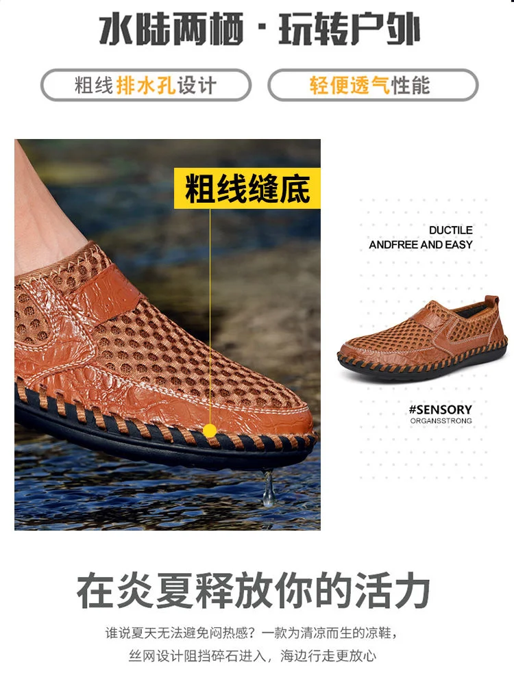 [Качество urance · быстрый возврат] clohoo кожаная сетчатая обувь дышащая большая повседневная мужская обувь летние открытые перфорированные сандалии сетчатая обувь мужская обувь