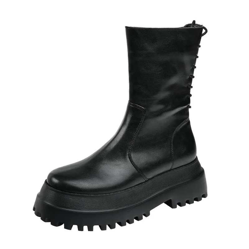 Женские короткие ботинки, модная мягкая кожа на платформе, зимняя обувь на толстом каблуке, женская повседневная женская обувь на молнии