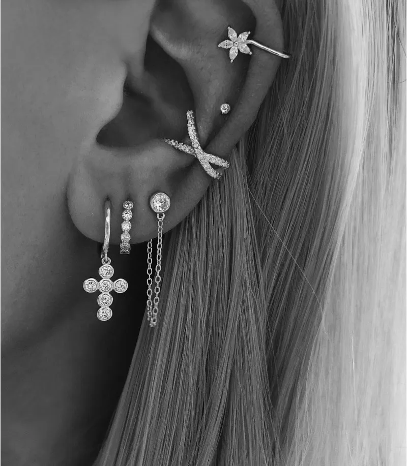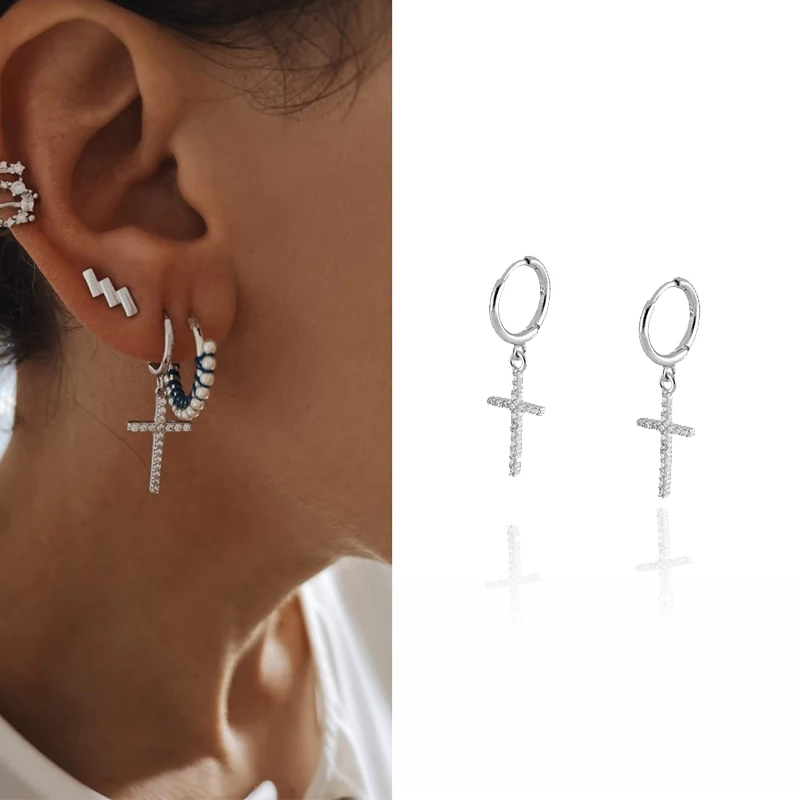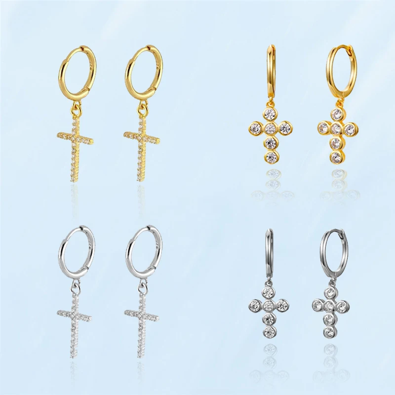 Серьги 2021 тренд новинка Пирсинг серьги женские Корейские модные женские серьги-подвески для пирсинга золотого и серебряного цвета с длинными крестиками и кристаллами, женские роскошные ювелирные изделия, аксессуары