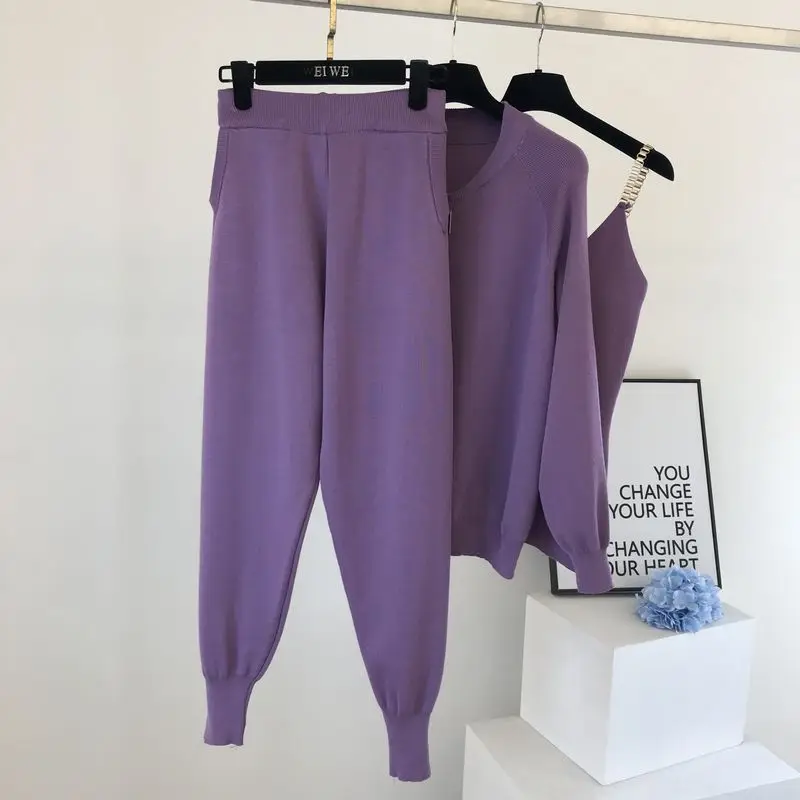 Chain vest + cardigan + harem pants2021 Korean slim knit suit