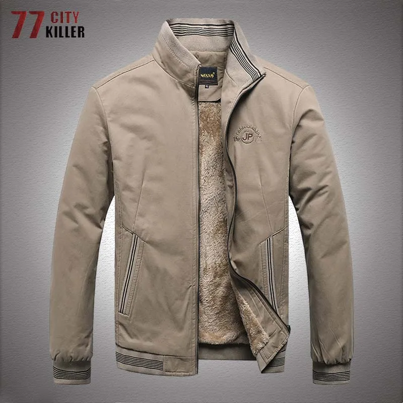 Мужская осенняя куртка с воротником-стойкой, на меховой подкладке