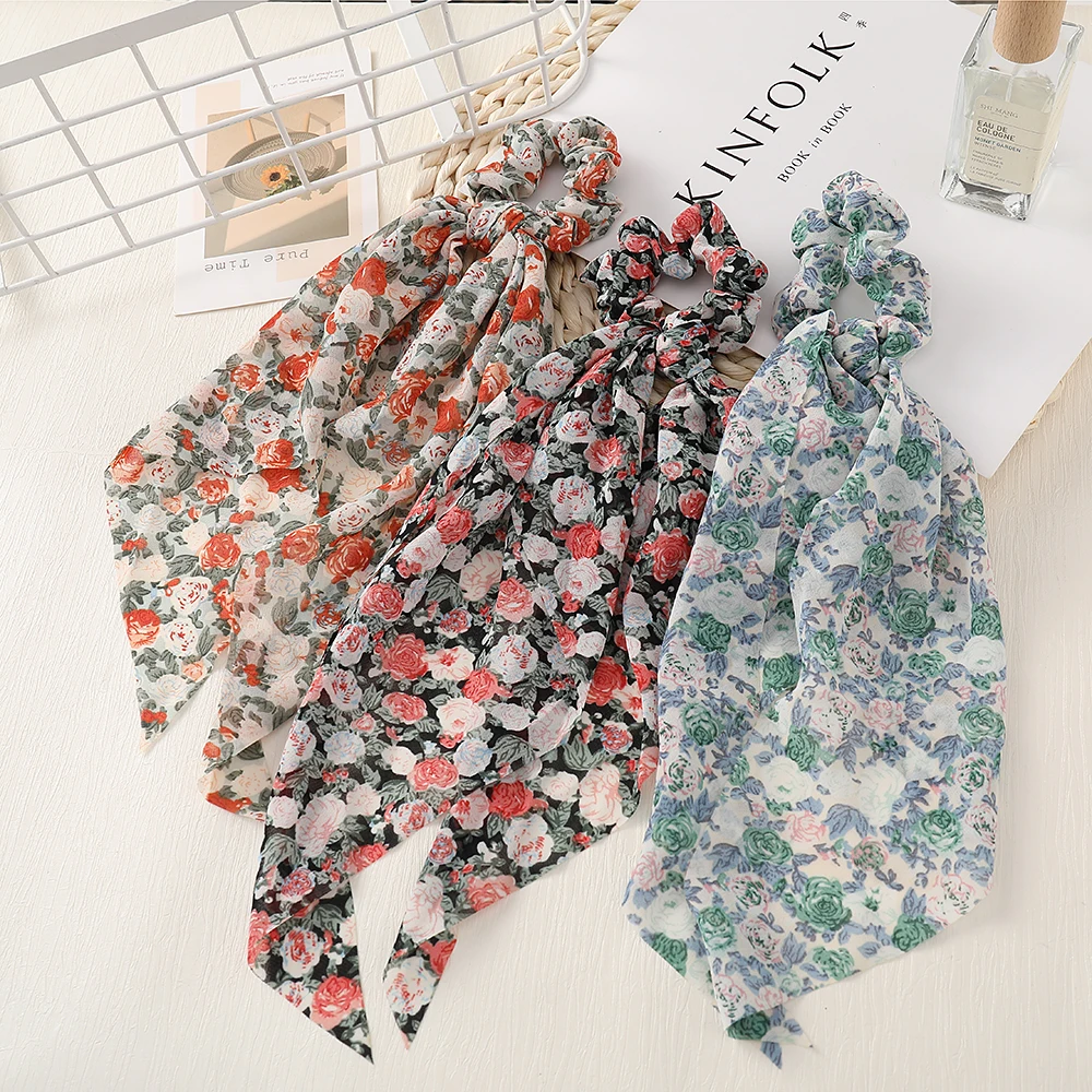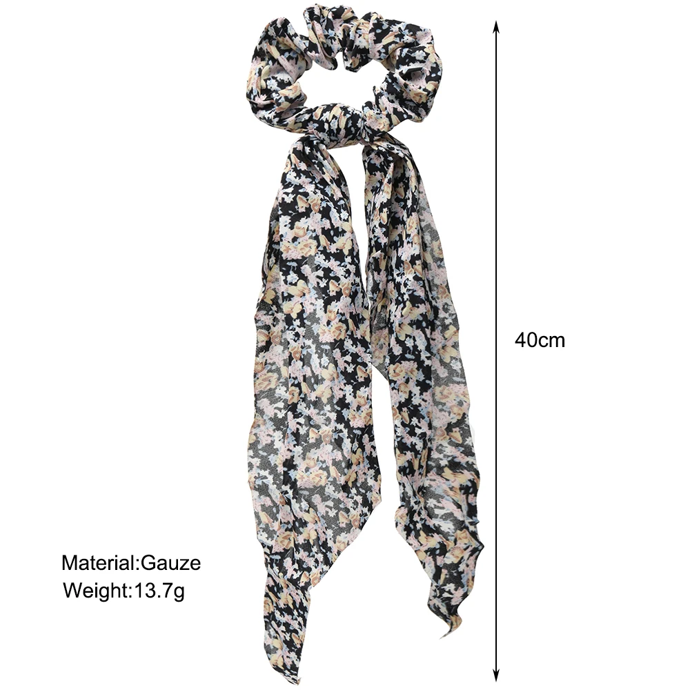 Женская шифоновая резинка для волос, с принтом и длинными лентами