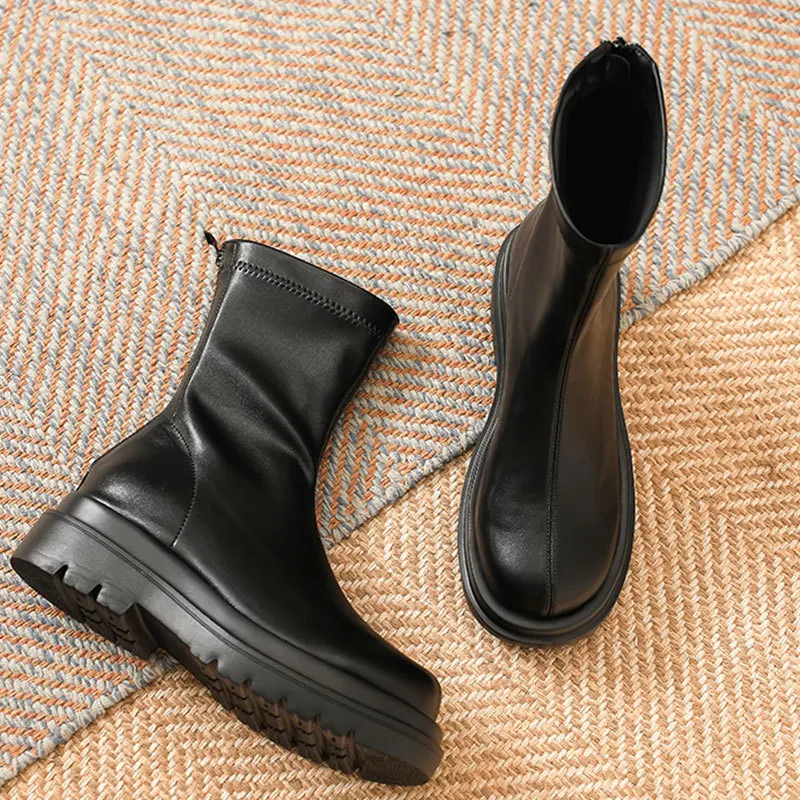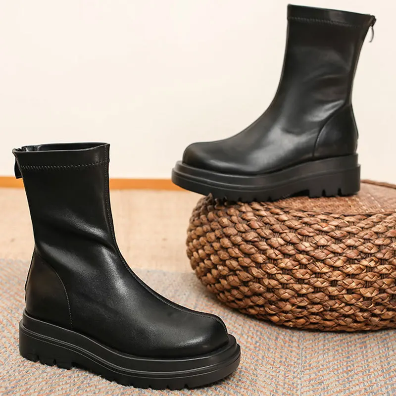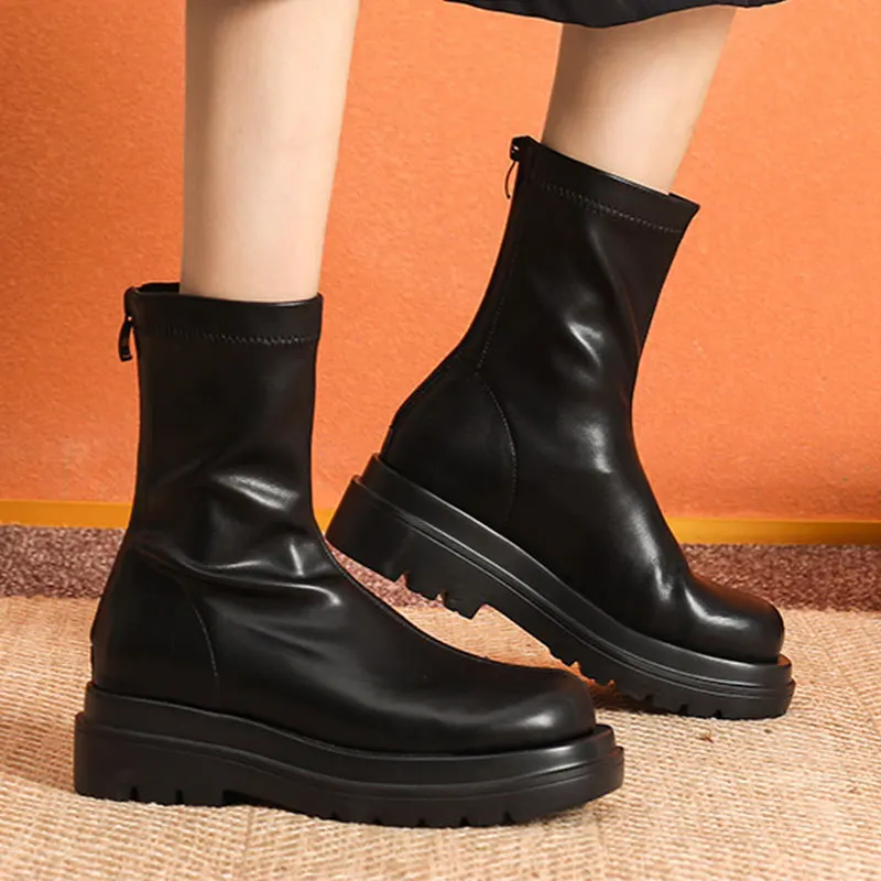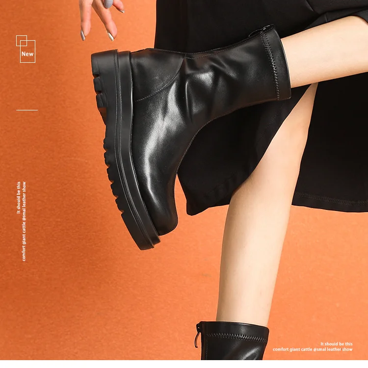 Кожаные женские ботильоны, модная мотоциклетная обувь на платформе, зимняя обувь на высоком каблуке, женская повседневная обувь