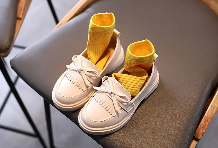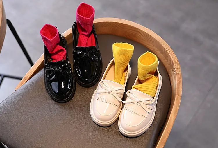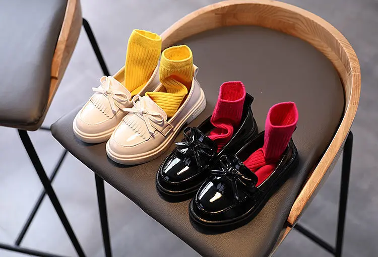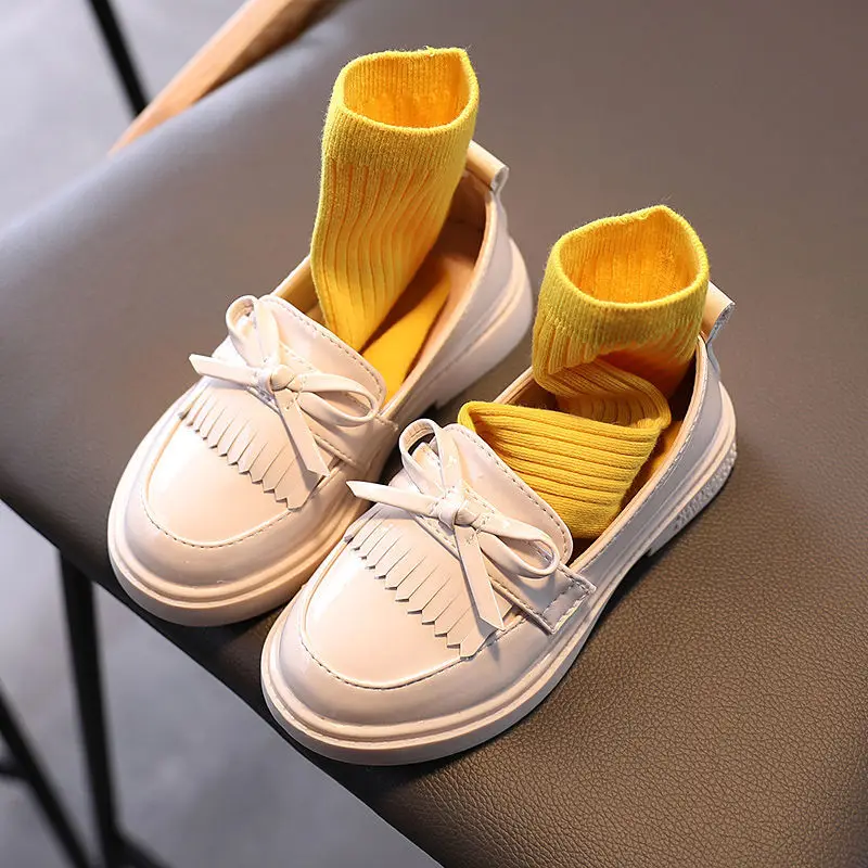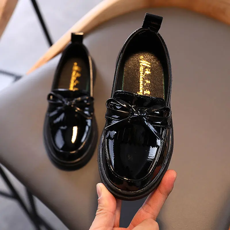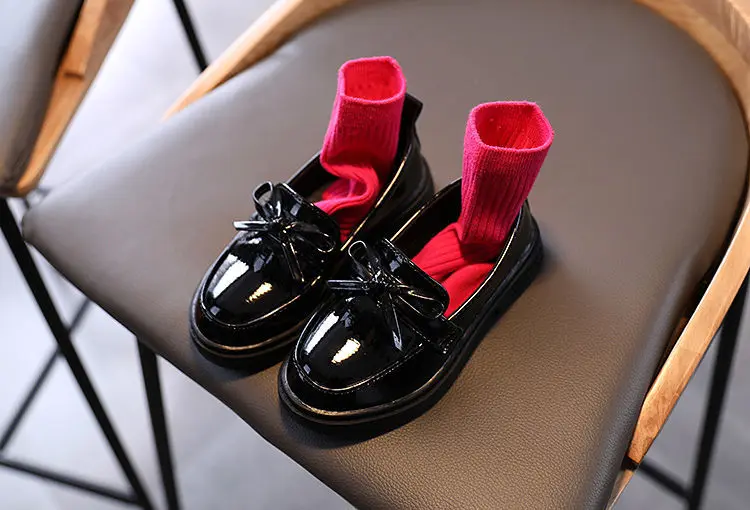 Весенняя детская обувь из искусственной кожи для девочек, туфли принцессы в британском стиле, повседневные Мокасины с мягкой подошвой и бантом-бабочкой для девочек