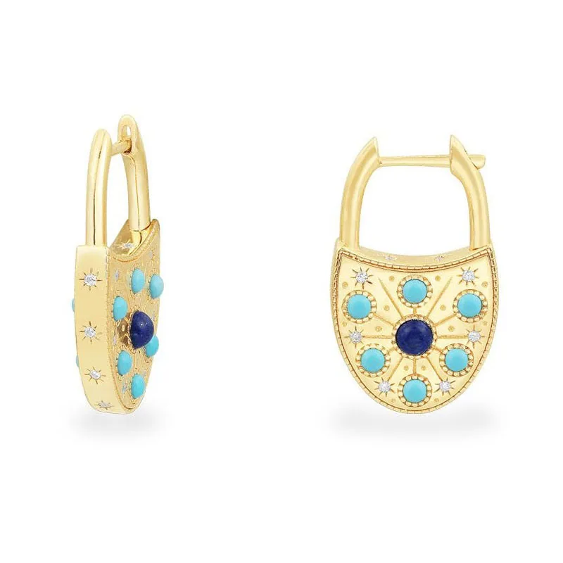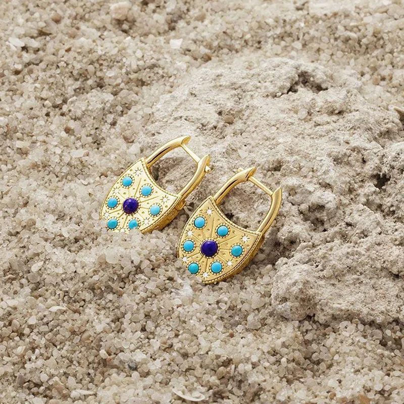 Женские серьги-кольца из серебра 2021 пробы, с синими камнями